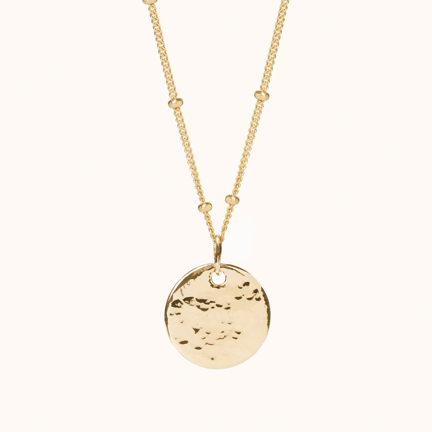 Gold Hammered Necklace with Bead Chain