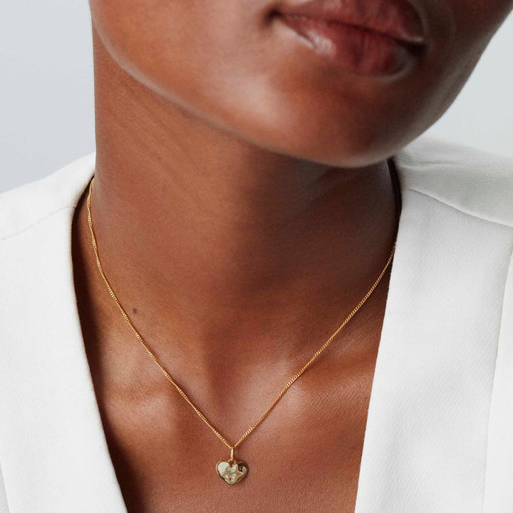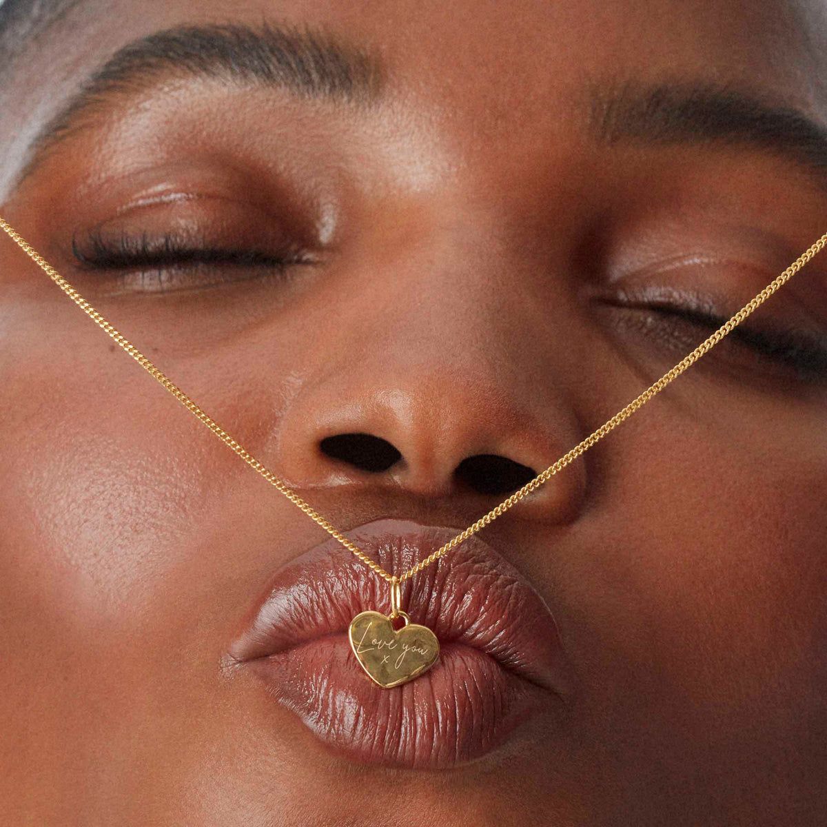 Handcrafted in 18k gold vermeil. Features a heart-shaped charm with a ripple texture.