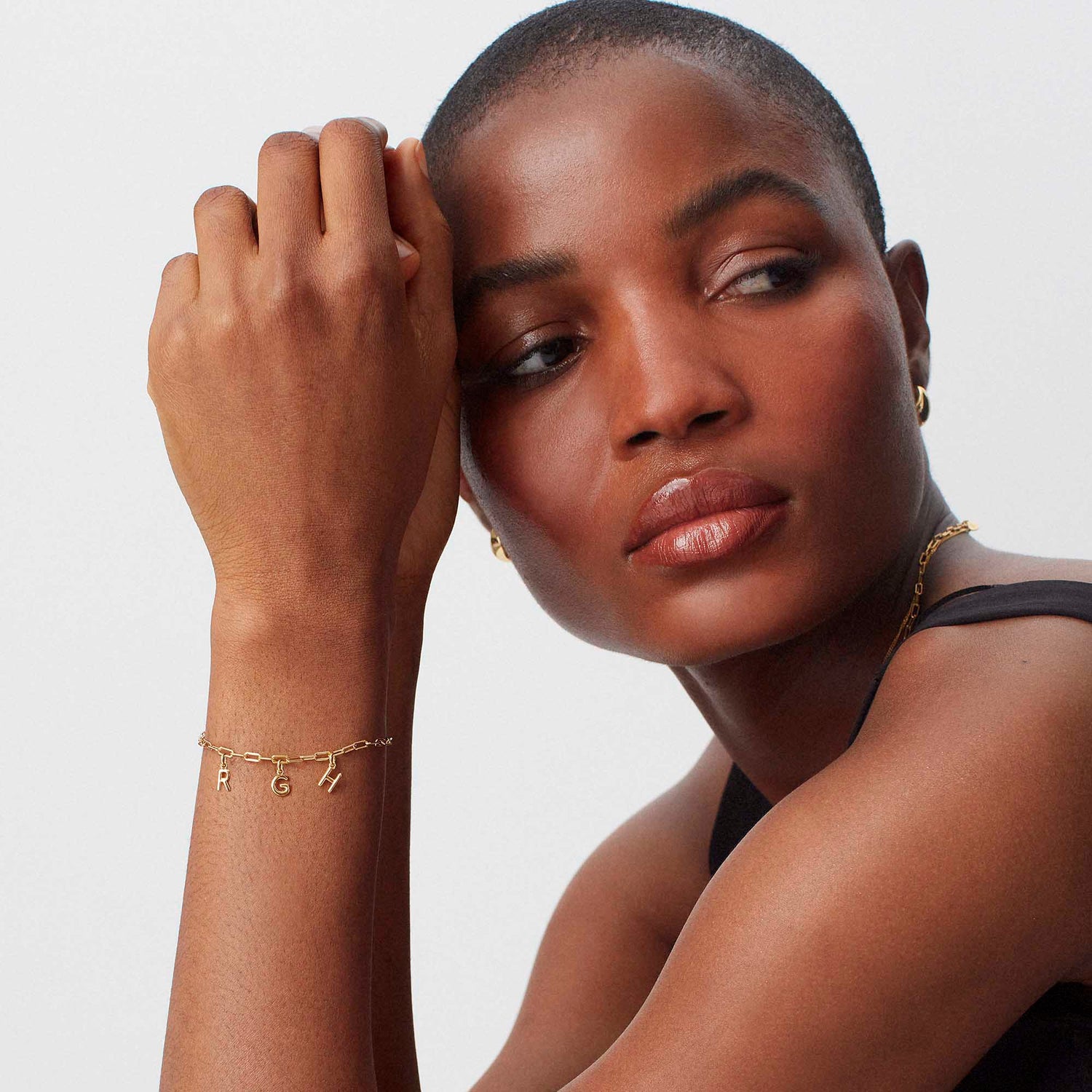 Handcrafted in 18k gold vermeil. Designed as a miniature letter charm for personalization.