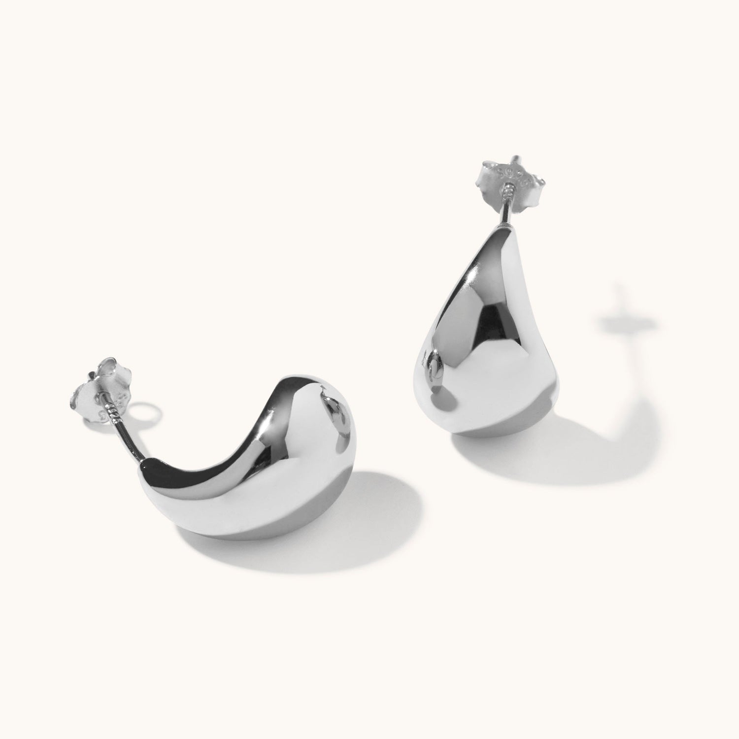 Handcrafted in sterling silver. Designed as large teardrop-shaped stud earrings.