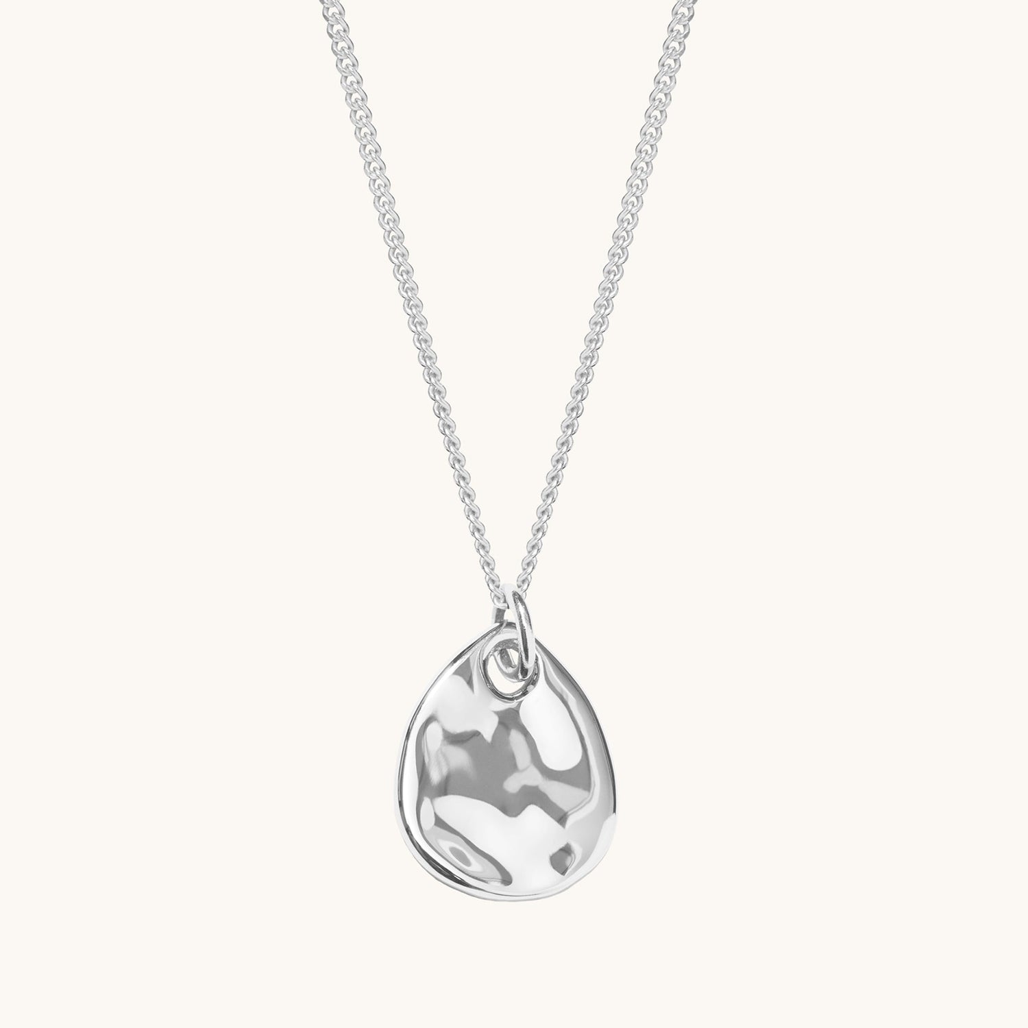 Handcrafted in sterling silver. Features a teardrop-shaped ripple charm on a 16-inch curb chain.