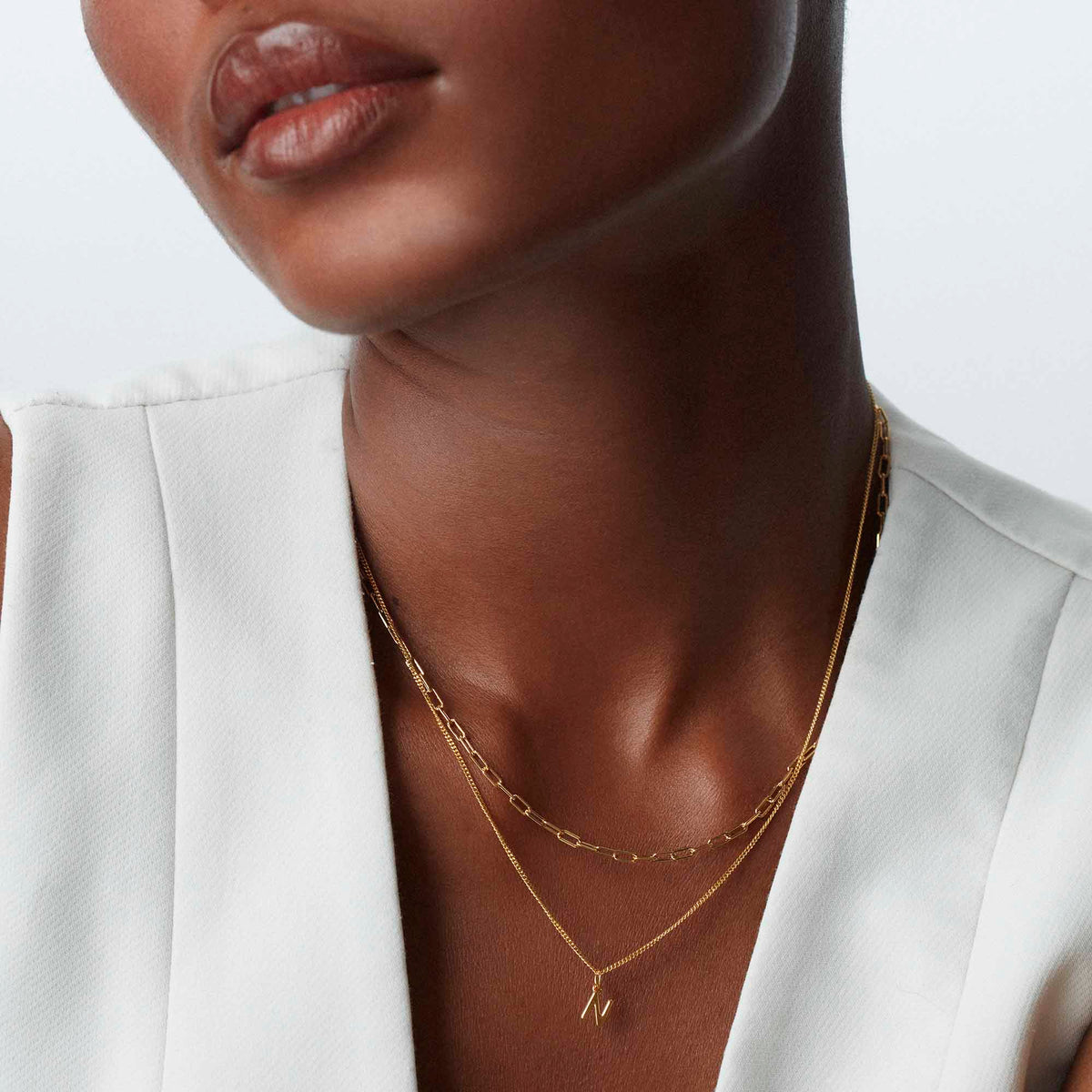 This Little Letter Layering Set by Muru Jewellery is a personalized statement featuring a delicate letter necklace paired with a mini paperclip chain. Perfect for layering or wearing solo.