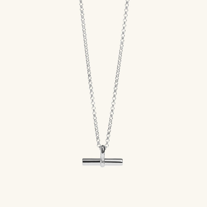 Handcrafted in sterling silver. Includes a T-Bar pendant suspended on a 16-18-inch plain belcher chain.