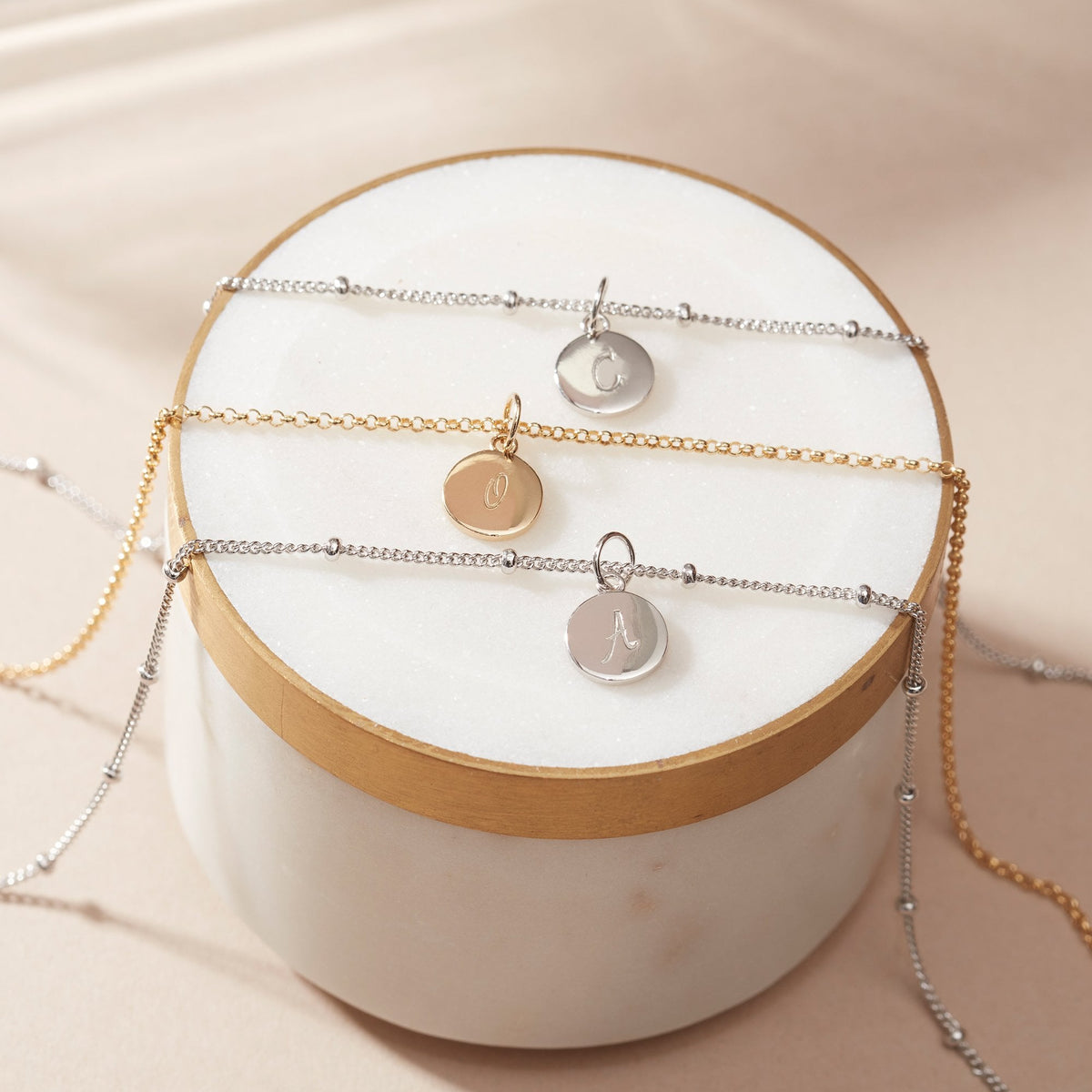 Mini Disc Necklace in Silver With Bead Chain