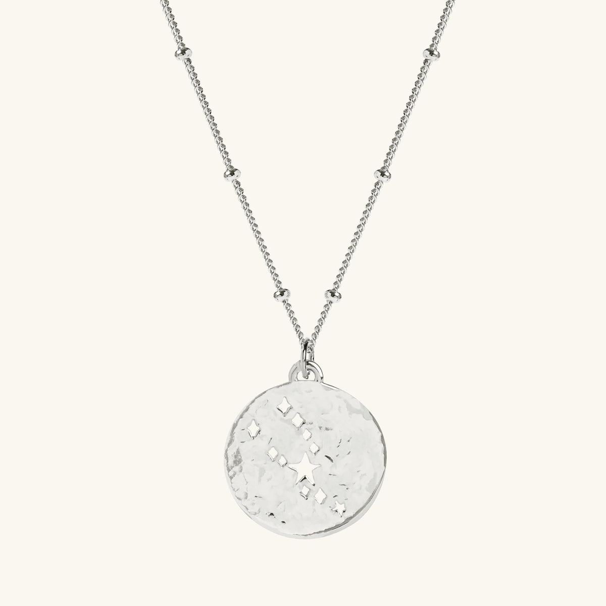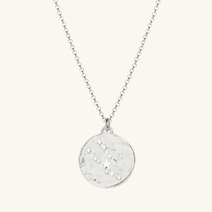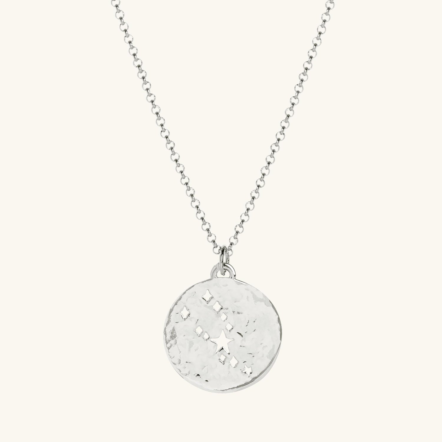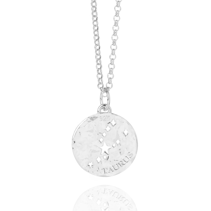 This Taurus Zodiac Necklace by Muru Jewellery is a subtle yet powerful piece for those born under the Taurus constellation. The pendant, with a lightly hammered finish and detailed cut-out pattern, is a unique gift for any Taurus, symbolizing strength, determination, and grounded energy.
