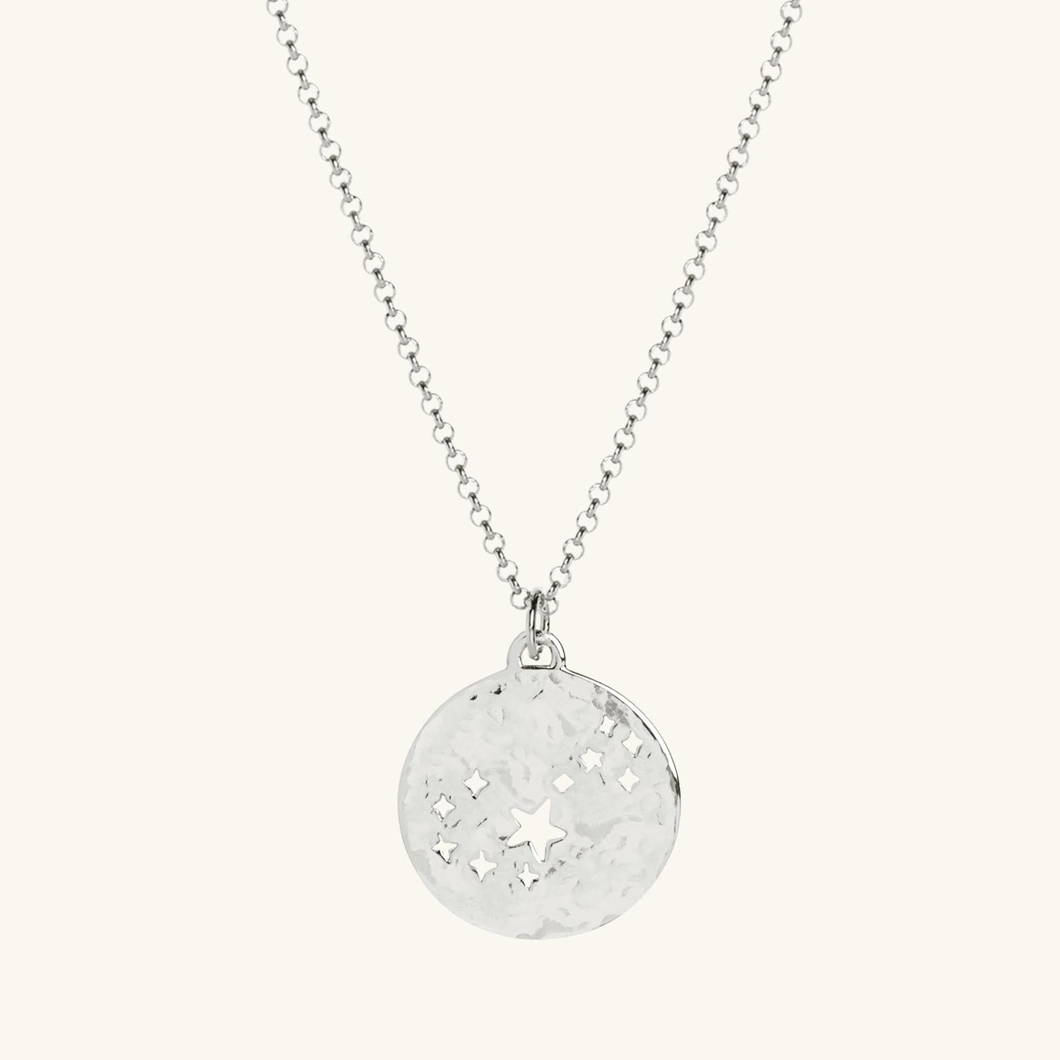 This Scorpio Zodiac Necklace by Muru Jewellery features a lightly hammered sterling silver pendant with a striking cut-out star design. Inspired by the Scorpio constellation, this necklace is perfect for any Scorpio who embodies strength, passion, and resilience. The engraved 'Scorpio' on the reverse adds a personal touch, making it a meaningful and memorable gift.