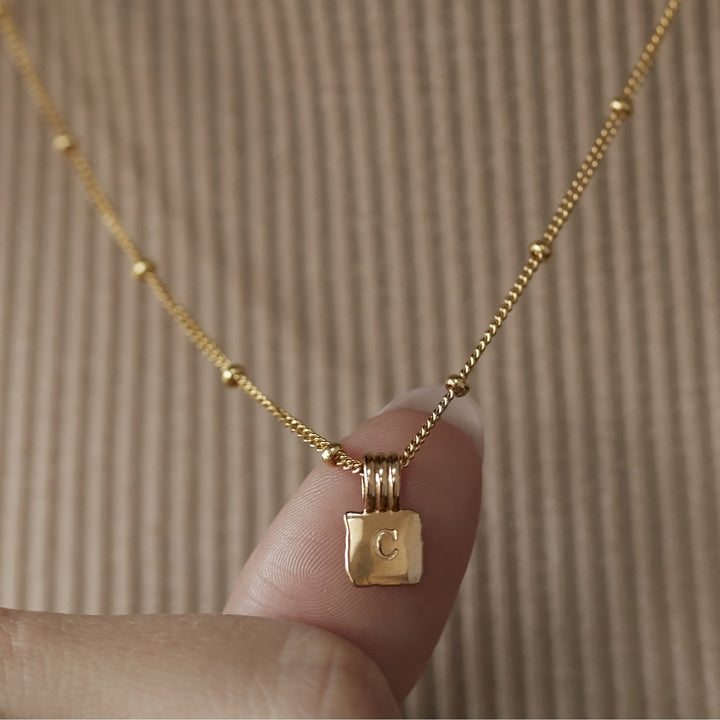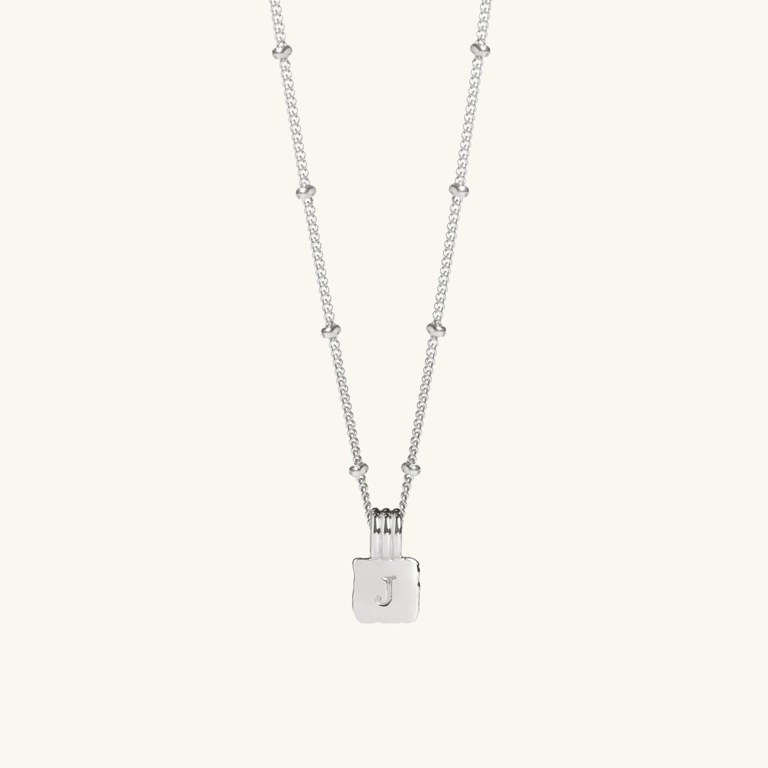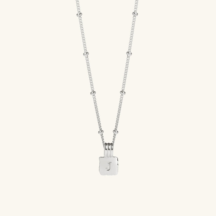 Mini Initial Square Charm Necklace Silver With Bead Chain