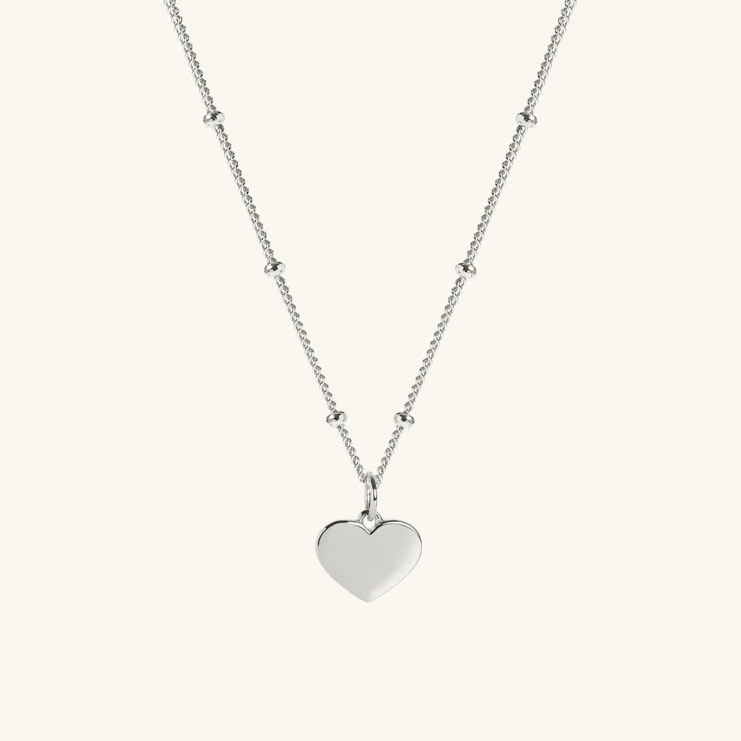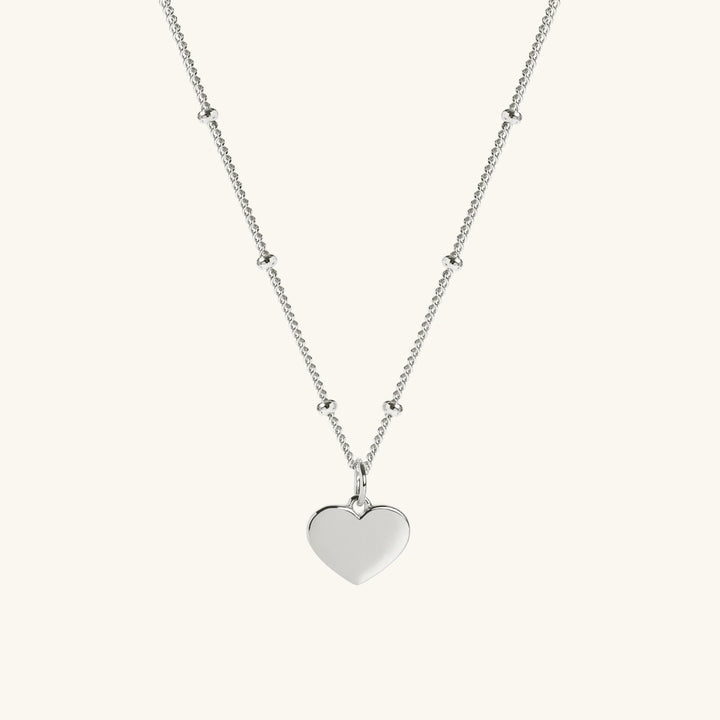 Heart Necklace In Silver With Bead Chain