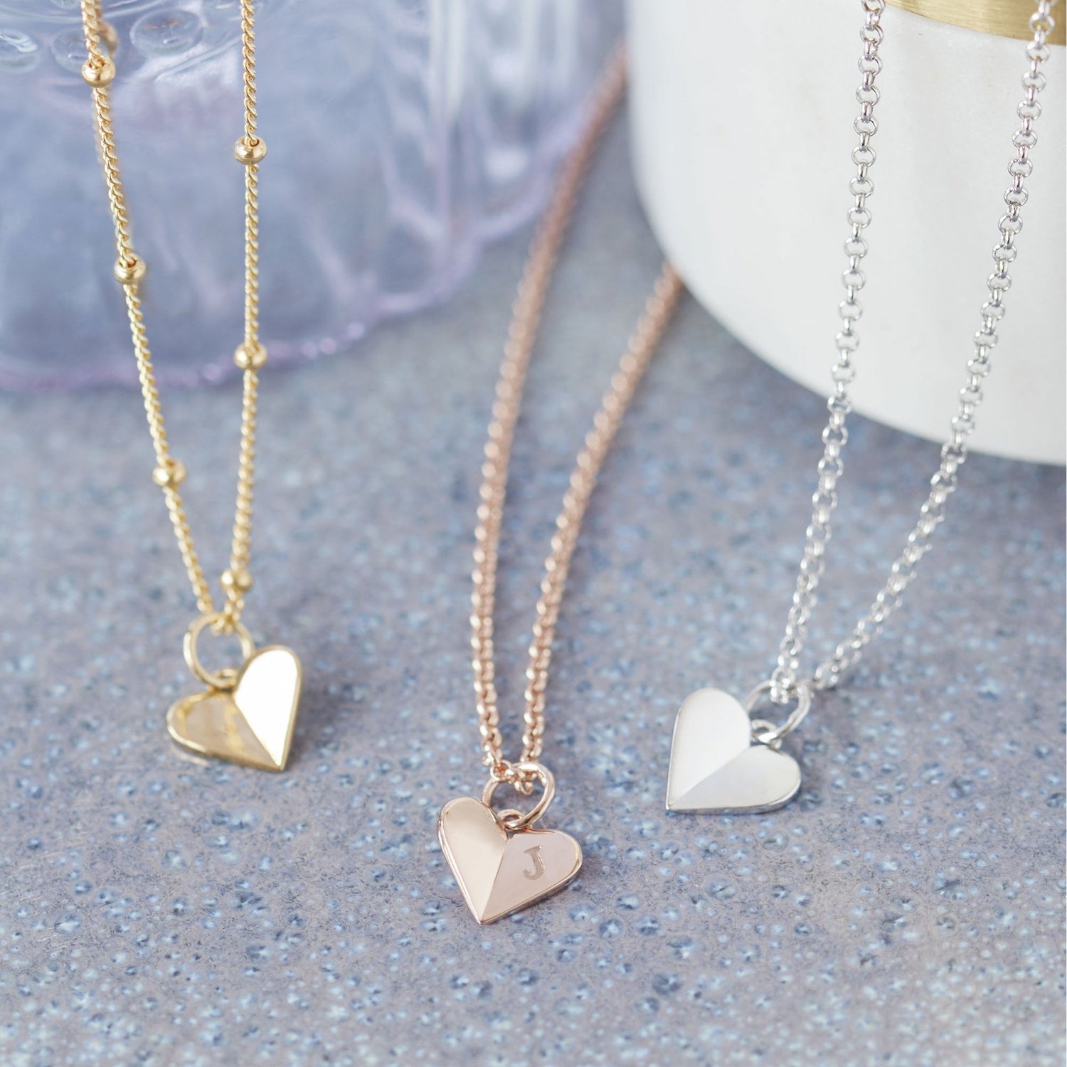 Mini Heart Necklace Silver by Muru Jewellery is a sweet, folded heart pendant necklace that can be personalized with two hand-stamped initials of your choice. This handcrafted necklace is a perfect token of love for yourself or a loved one.