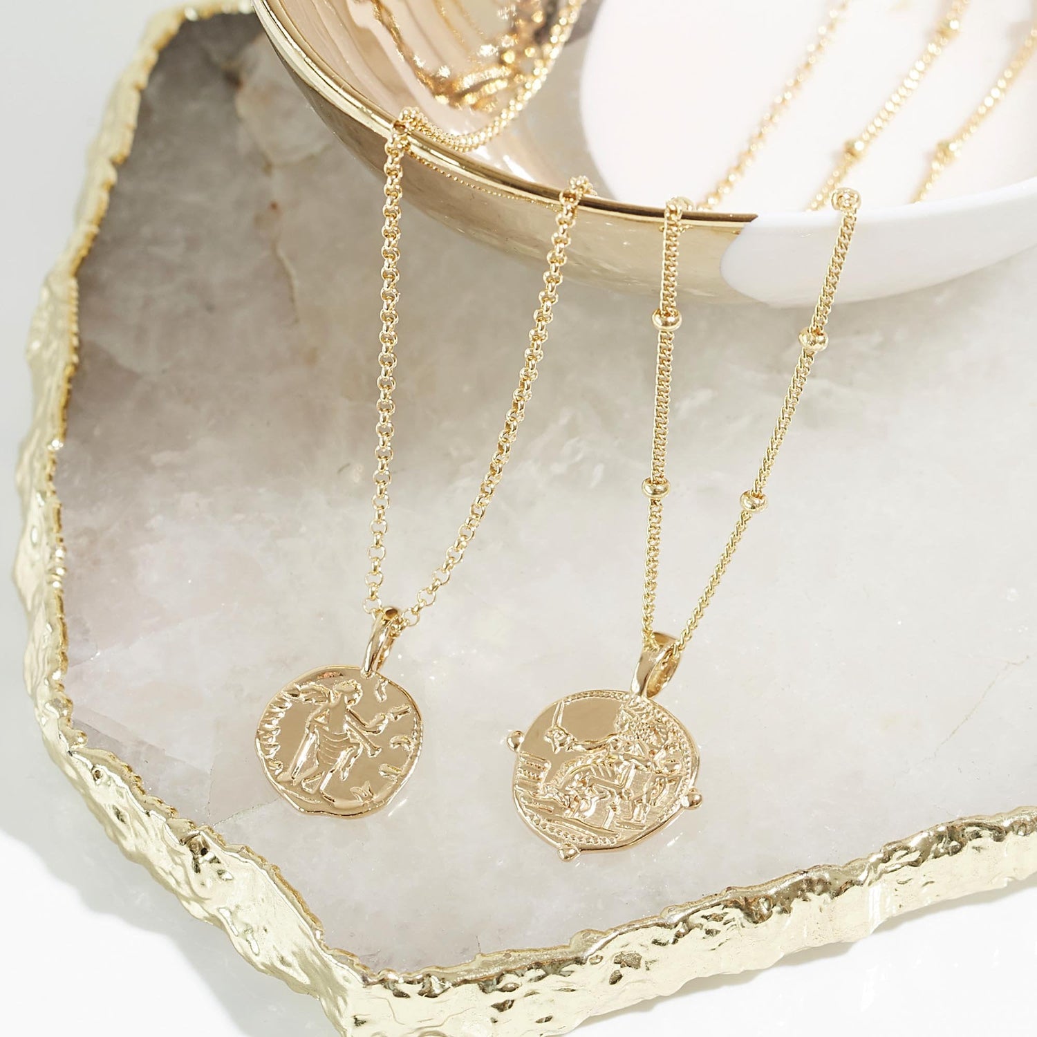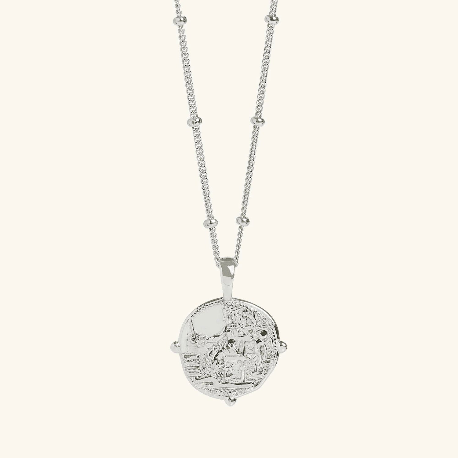 Aphrodite Coin Necklace in Silver With Bead Chain