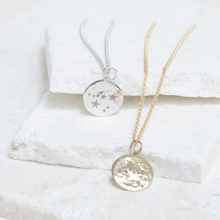 This Cancer Zodiac Necklace by Muru Jewellery is a thoughtful and personal gift for those born under the Cancer zodiac. The star-shaped design, representing the Cancer constellation, is elegantly crafted in sterling silver with a hammered texture. A beautiful piece for those who cherish astrology and the deep connections between the stars and personal identity.
