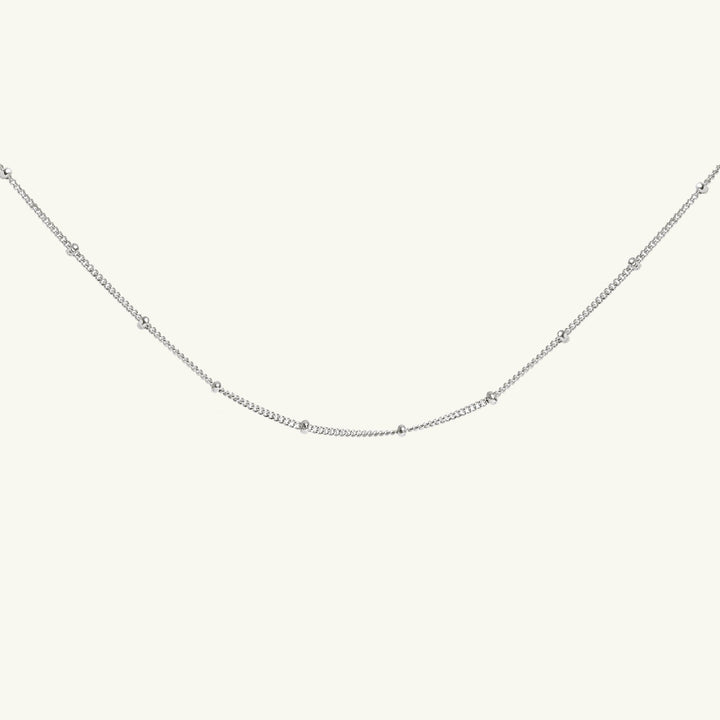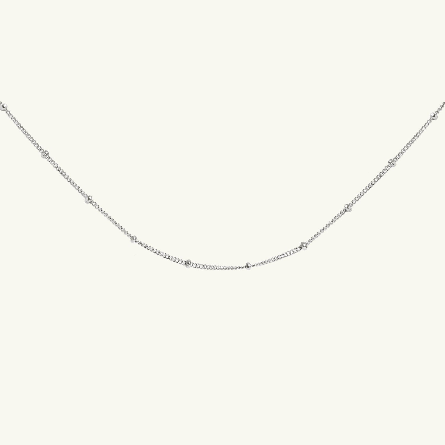 Made from solid sterling silver, with delicate beaded chain detailing. Chain length: 14” (Choker style).