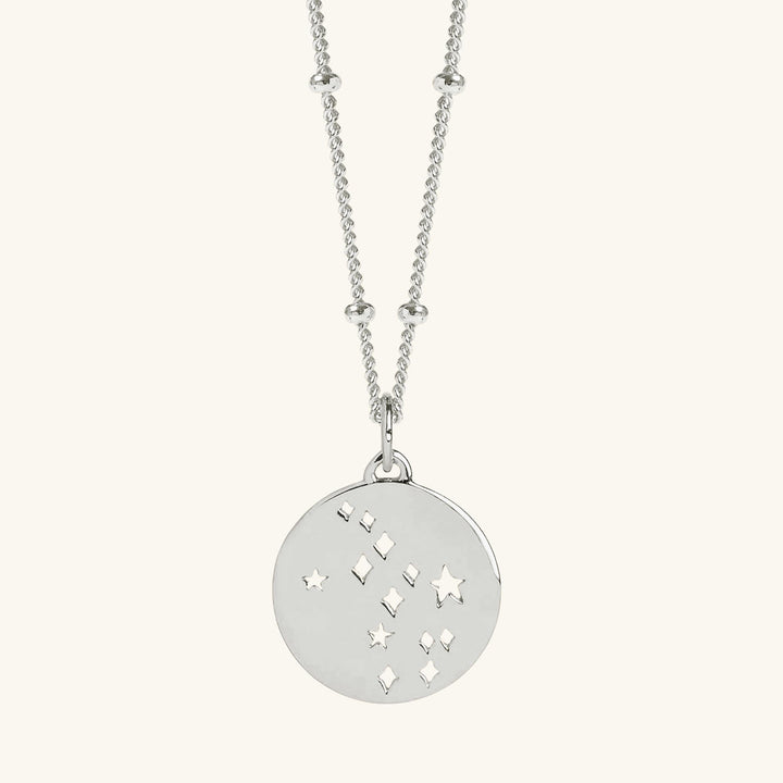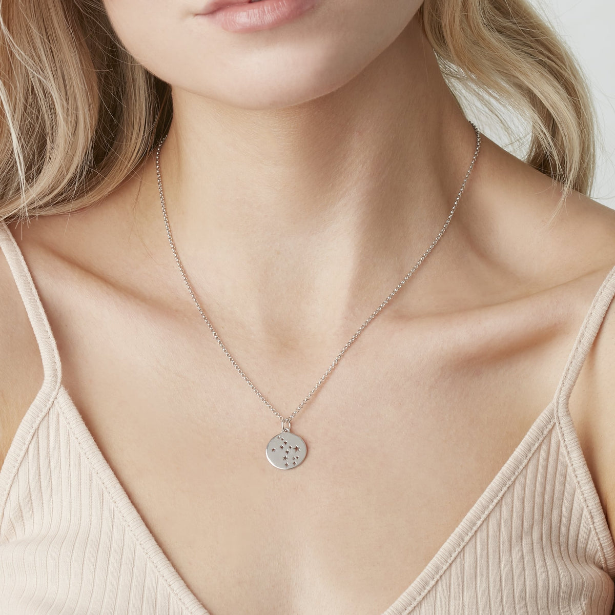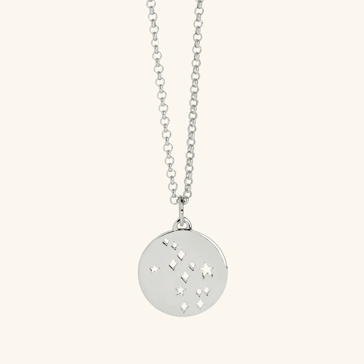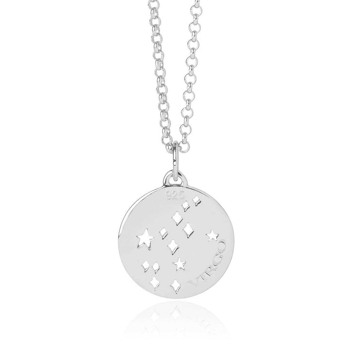 Handcrafted in sterling silver, with a cut-out star design representing the Virgo constellation. Chain length: 18' Plain Belcher Chain.