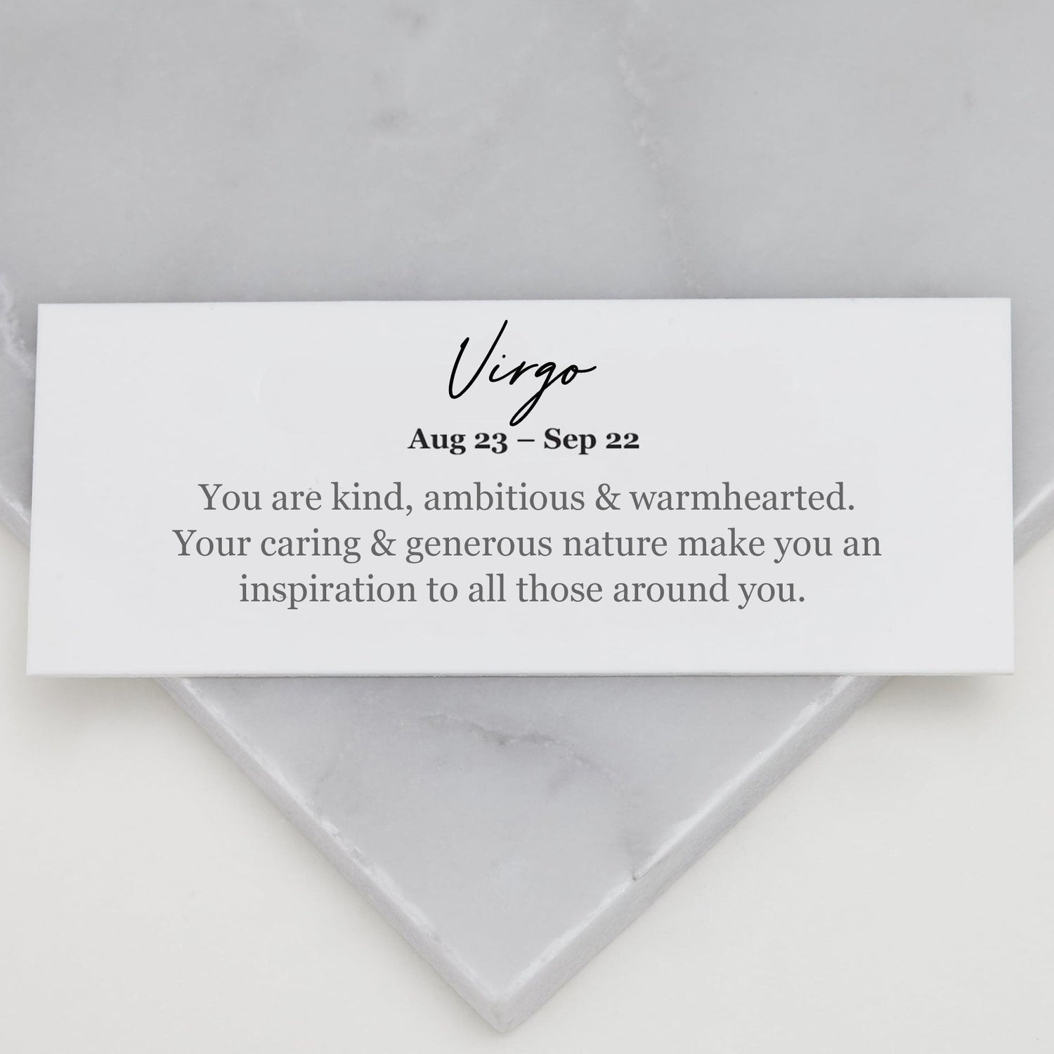 This Virgo Star Sign Necklace by Muru Jewellery is a delicate tribute to the Virgo zodiac. Its fine sterling silver design, featuring a unique cut-out star pattern that represents the Virgo constellation, is both elegant and meaningful. Suspended on an 18' plain belcher chain, it’s the perfect way to showcase your astrological identity.