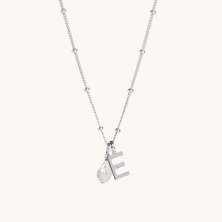 Made from solid sterling silver or 18ct gold vermeil, featuring a freshwater pearl and an initial charm. Chain length: 16' Bead Chain.