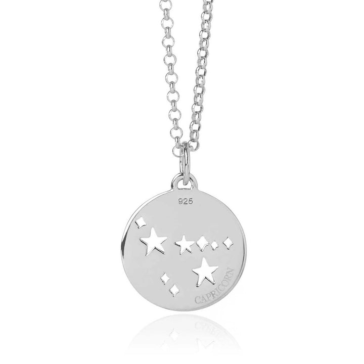Made from solid sterling silver with an 18' plain Belcher chain. Cut-out star design representing the Capricorn constellation.