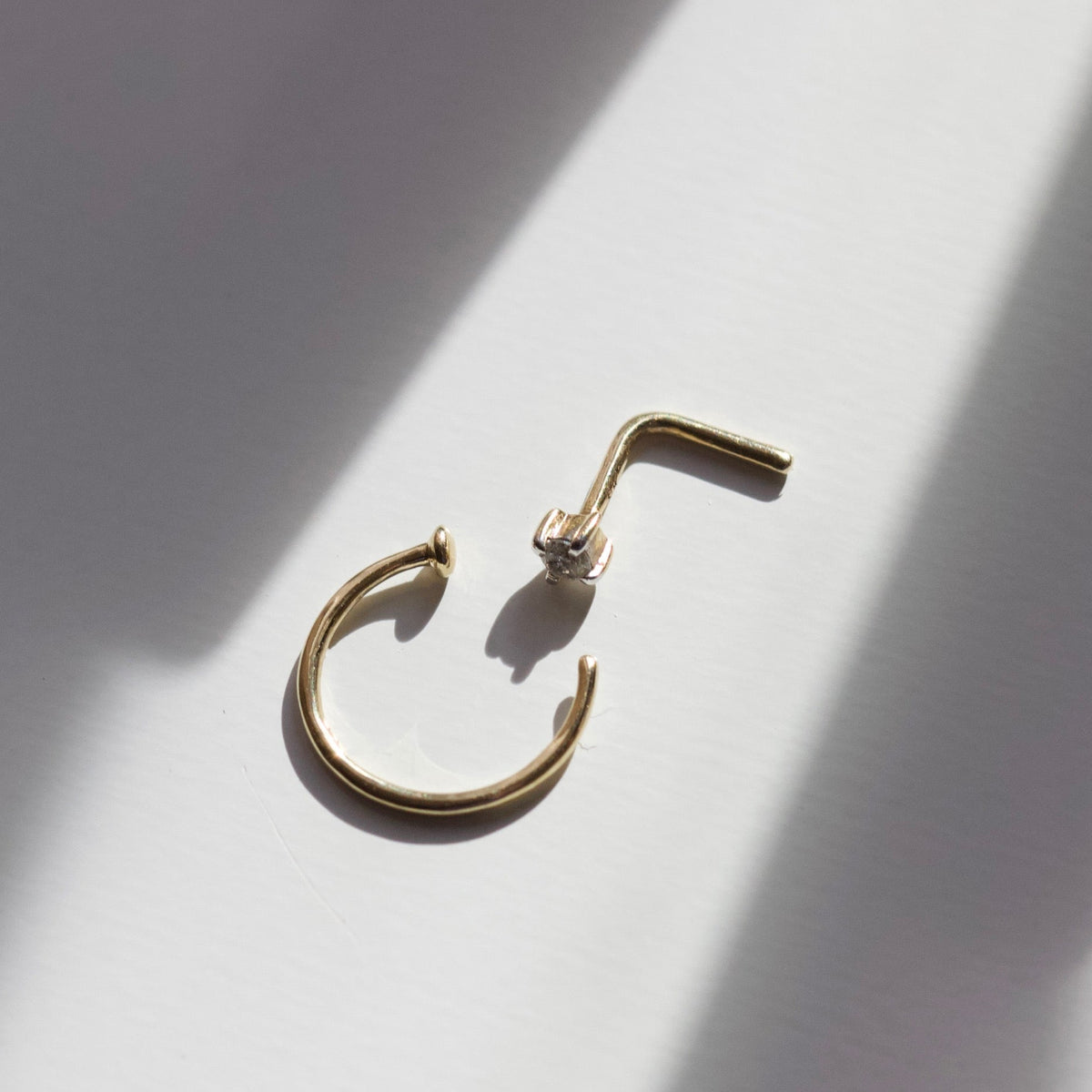 This Anita Rani Shakti Diamond Nose Stud by Carrie Elizabeth is the perfect blend of delicate beauty and powerful symbolism. Designed for everyday wear, this dainty nose stud features a diamond known for its cleansing powers, symbolizing purity and inner strength. The minimalist design highlights the timeless nature of diamonds, making it a subtle yet empowering piece. Ideal for those who want to bring a little sparkle and purity into their daily routine.