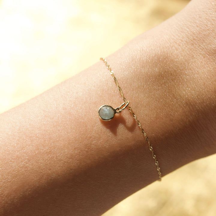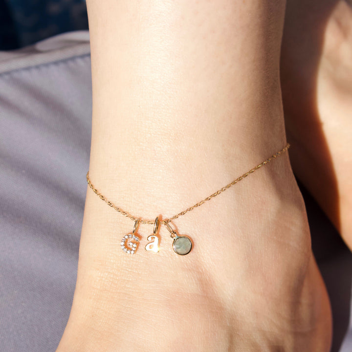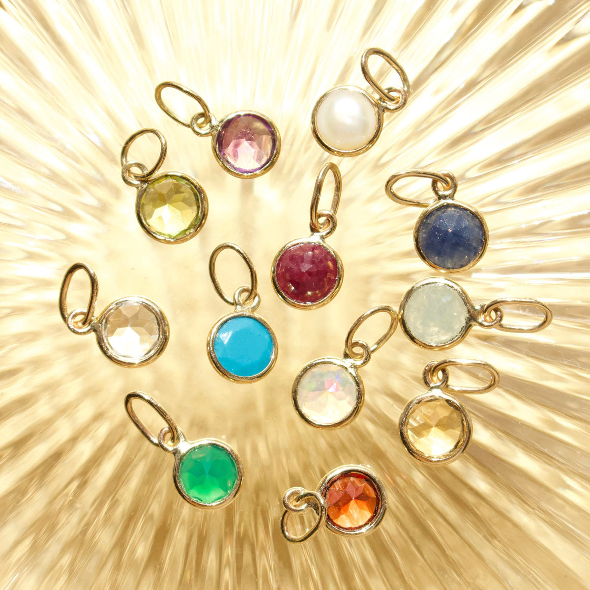 This Birthstone Charm by Carrie Elizabeth (9k Yellow Gold) allows you to carry meaningful stones and initials close to your heart. Create a personal or symbolic word with these versatile, collectable charms. Perfect for life’s journey.