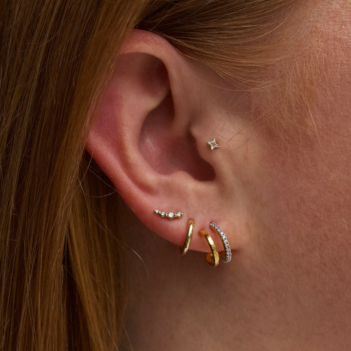 Handcrafted in 14k gold vermeil with pave-set cubic zirconia stones. Innovative double hoop design for versatility.