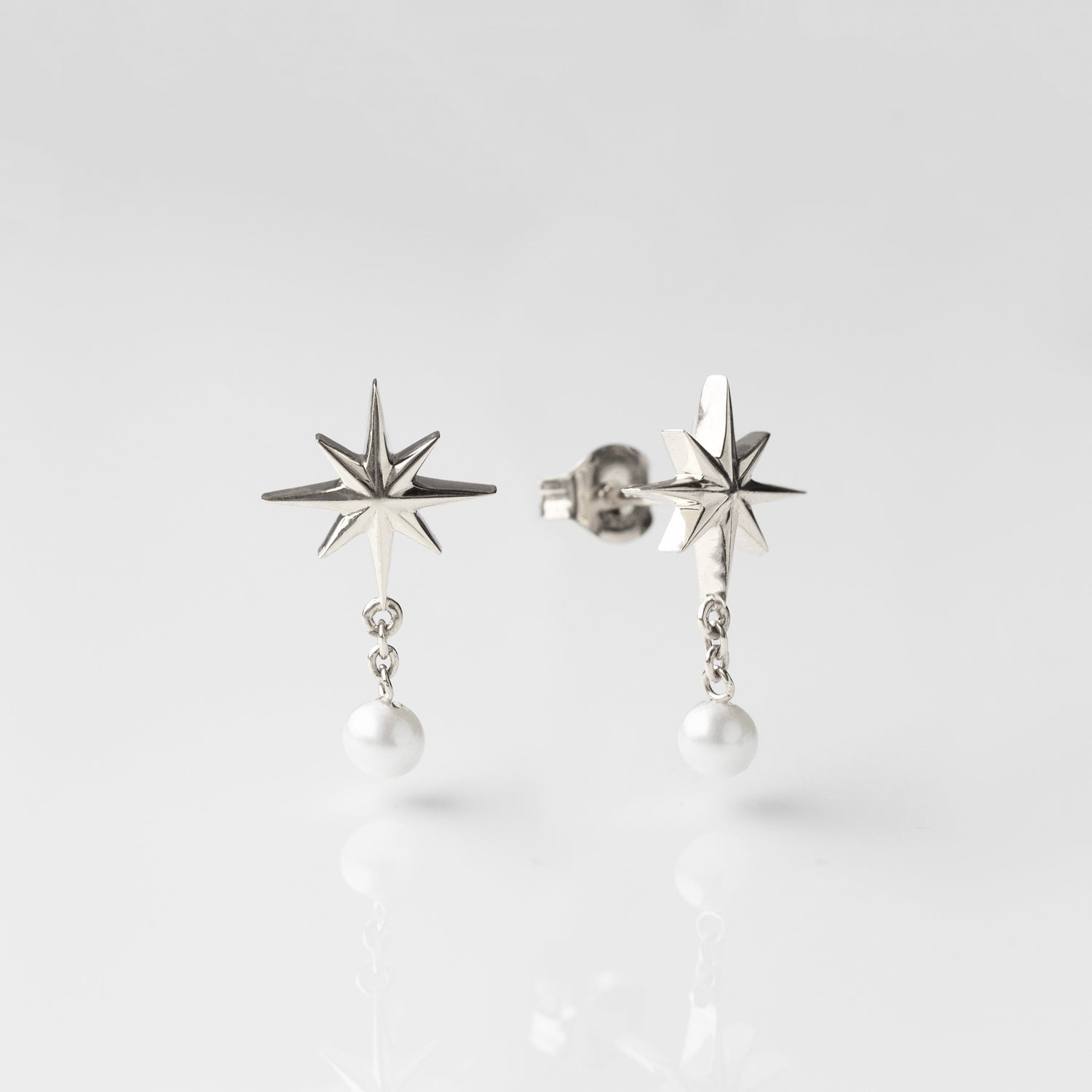 Crafted in sterling silver with a star stud and natural pearl drop. Lightweight and comfortable for all-day wear.