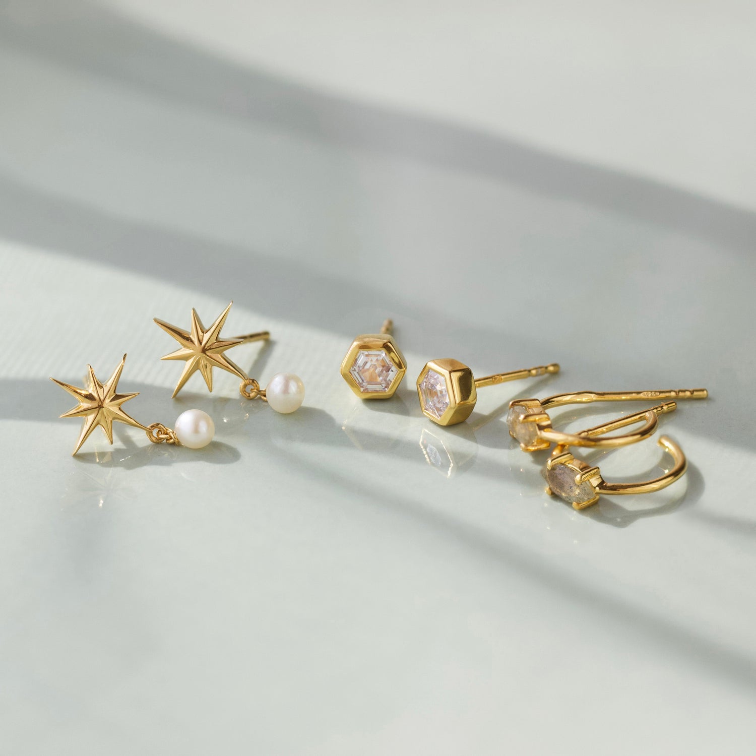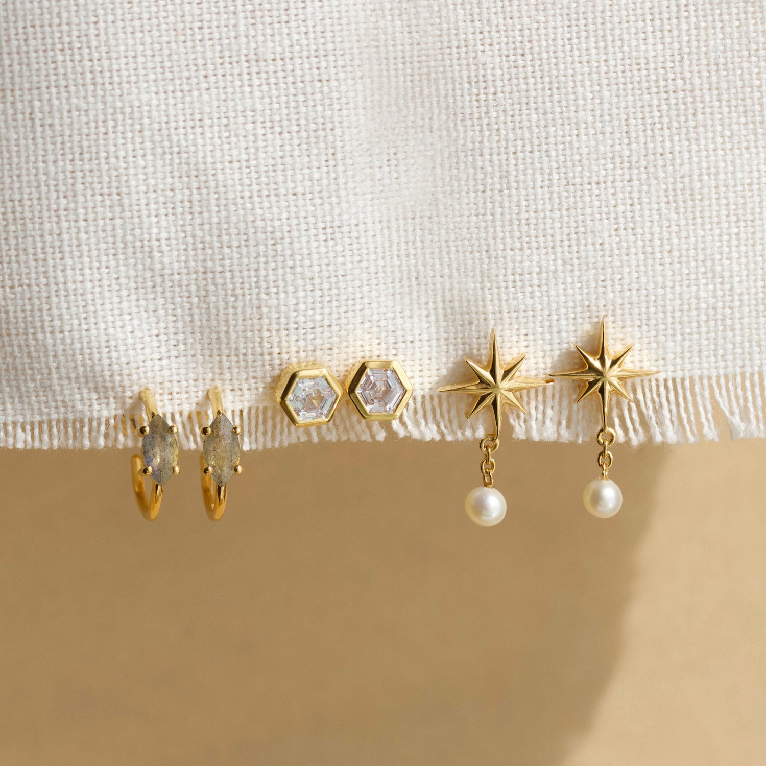 Crafted in 14k gold vermeil with a star stud and natural pearl drop. Lightweight and designed for all-day elegance.