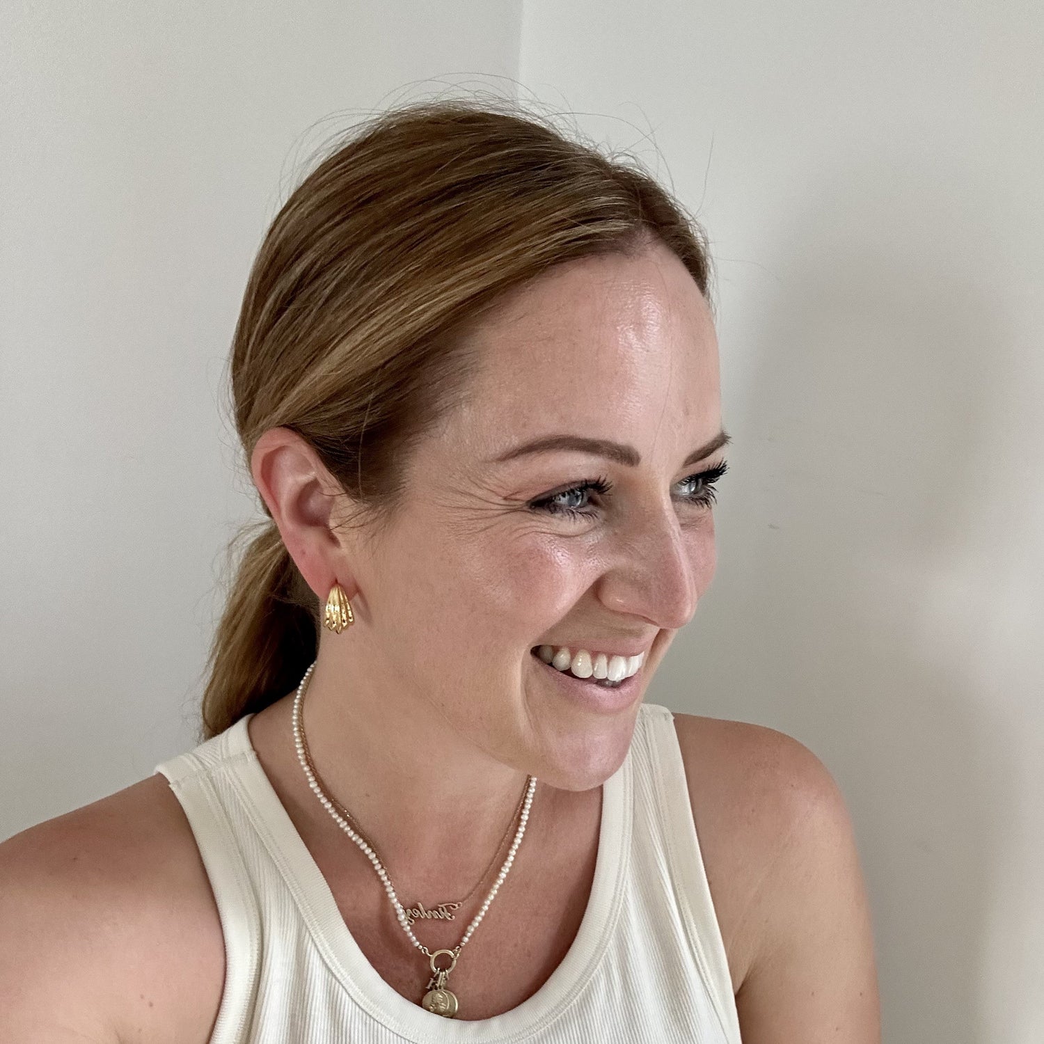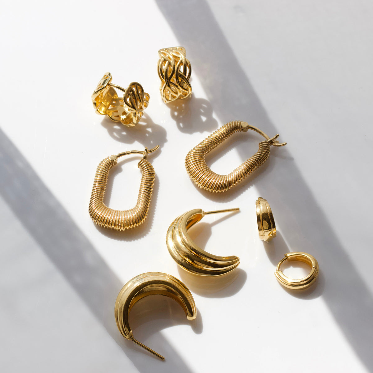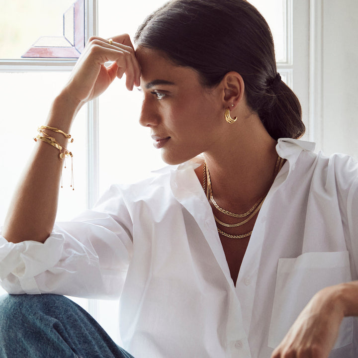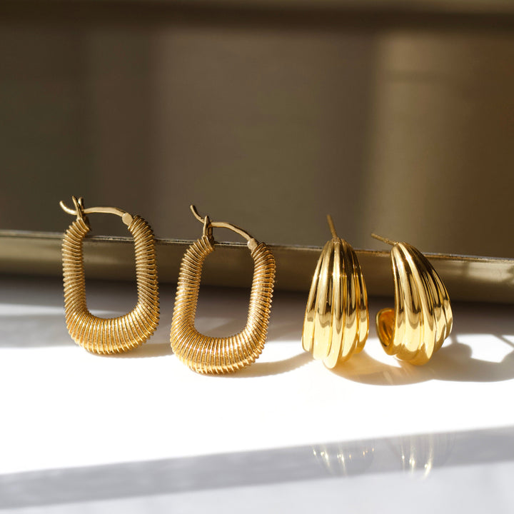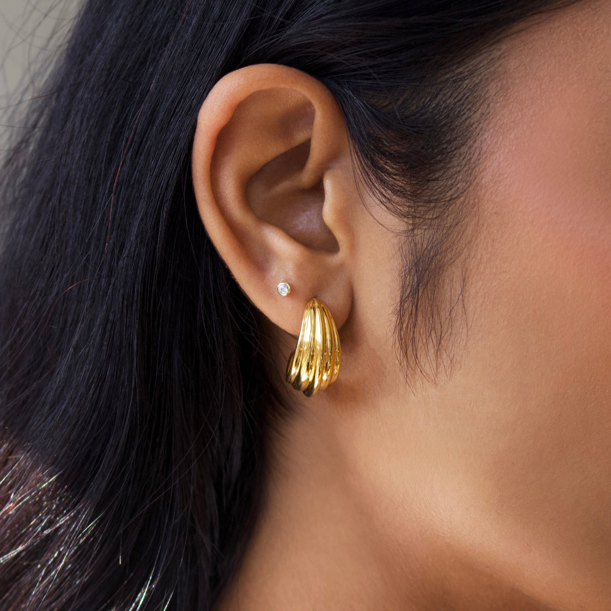Crafted in 14k gold-plated metal with a croissant texture. Lightweight and comfortable for everyday wear.
