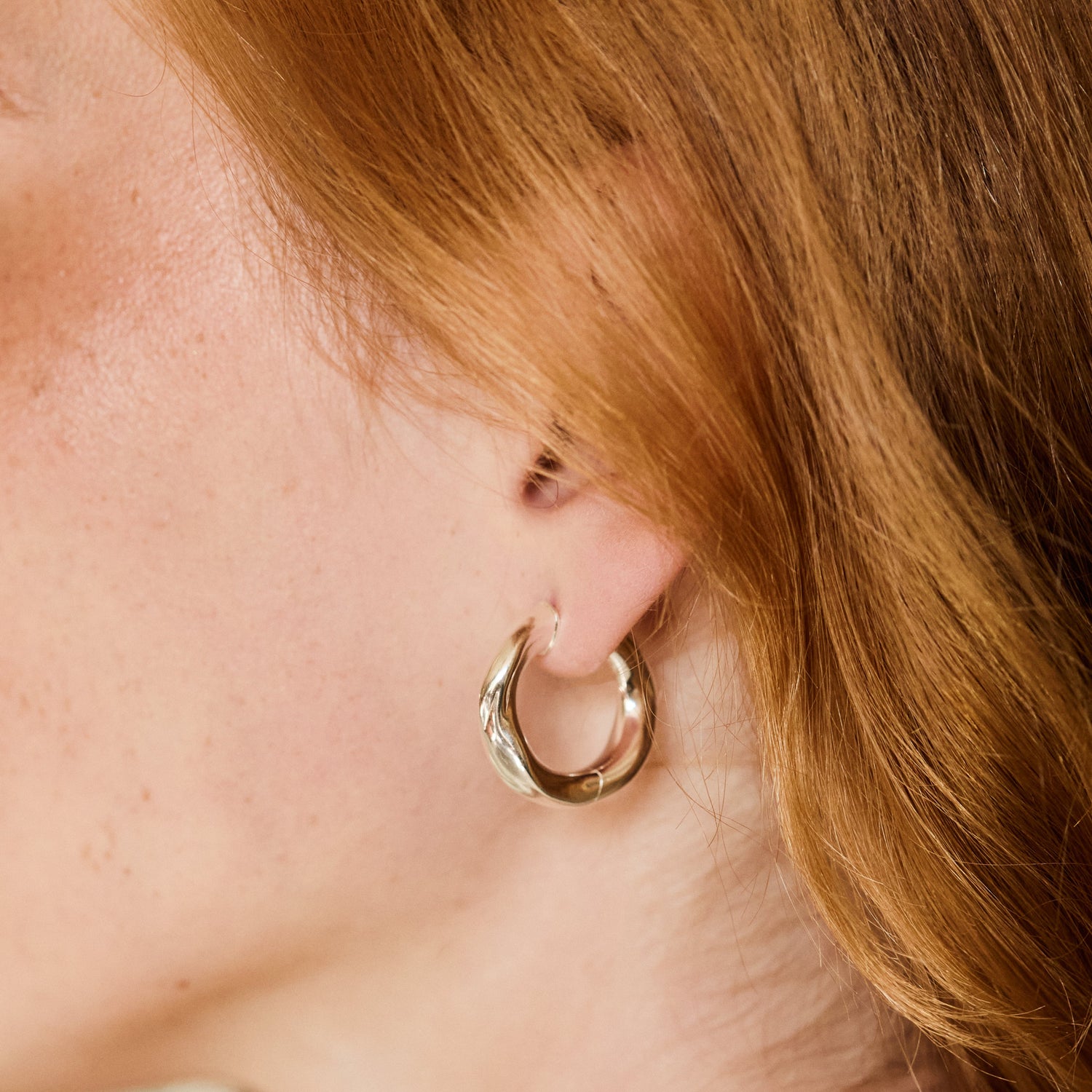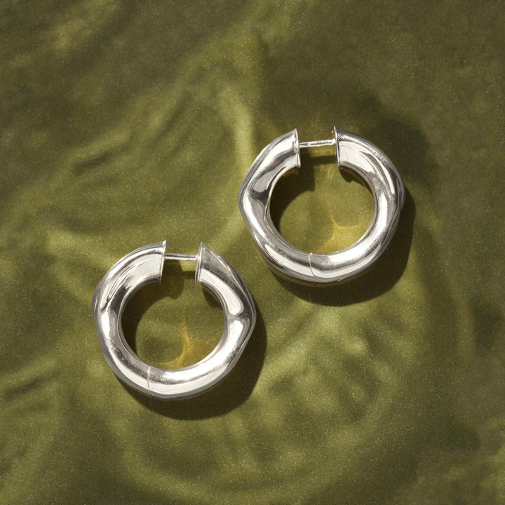 These Chunky Organic Hoops by Carrie Elizabeth (Silver Plated) redefine simplicity with their organic shape and polished finish. Designed to seamlessly elevate your everyday style, these hoops are a versatile accessory for any occasion. Their bold yet minimalist design makes them a staple piece in your jewelry collection.