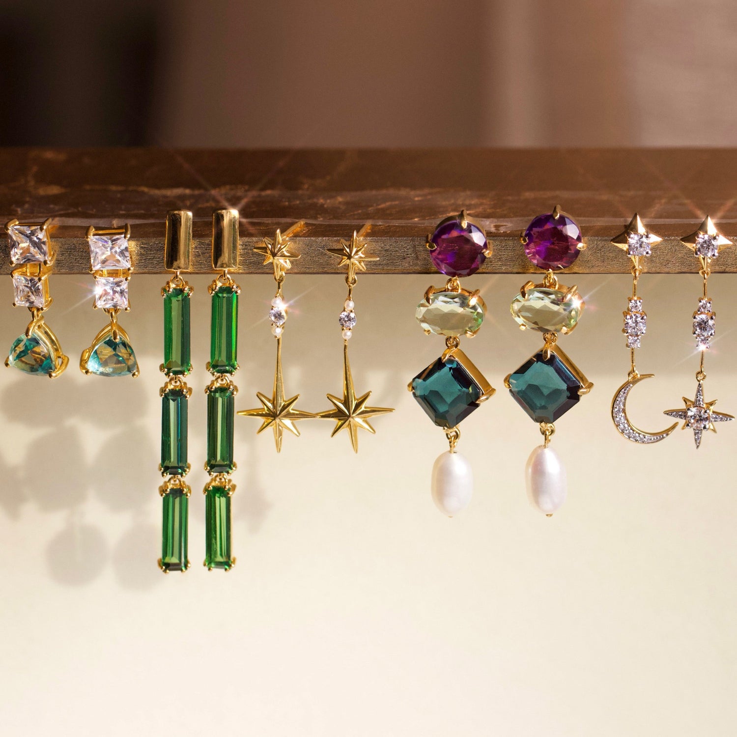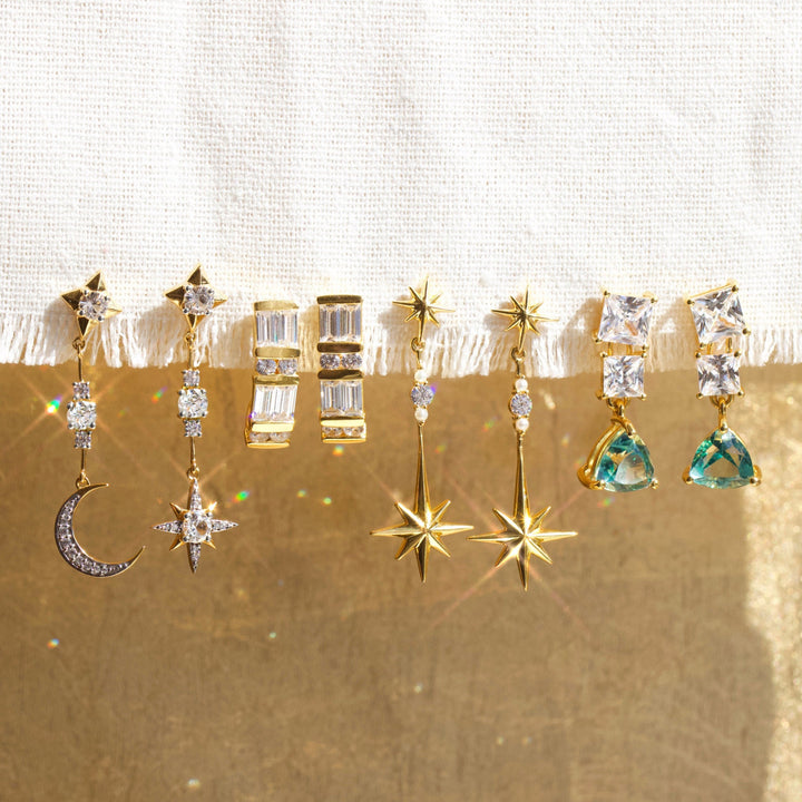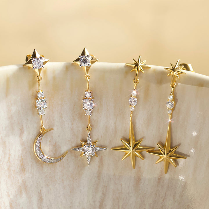 Handcrafted in 14k gold vermeil with star and moon-shaped cubic zirconia drops. Lightweight for comfortable all-day wear.