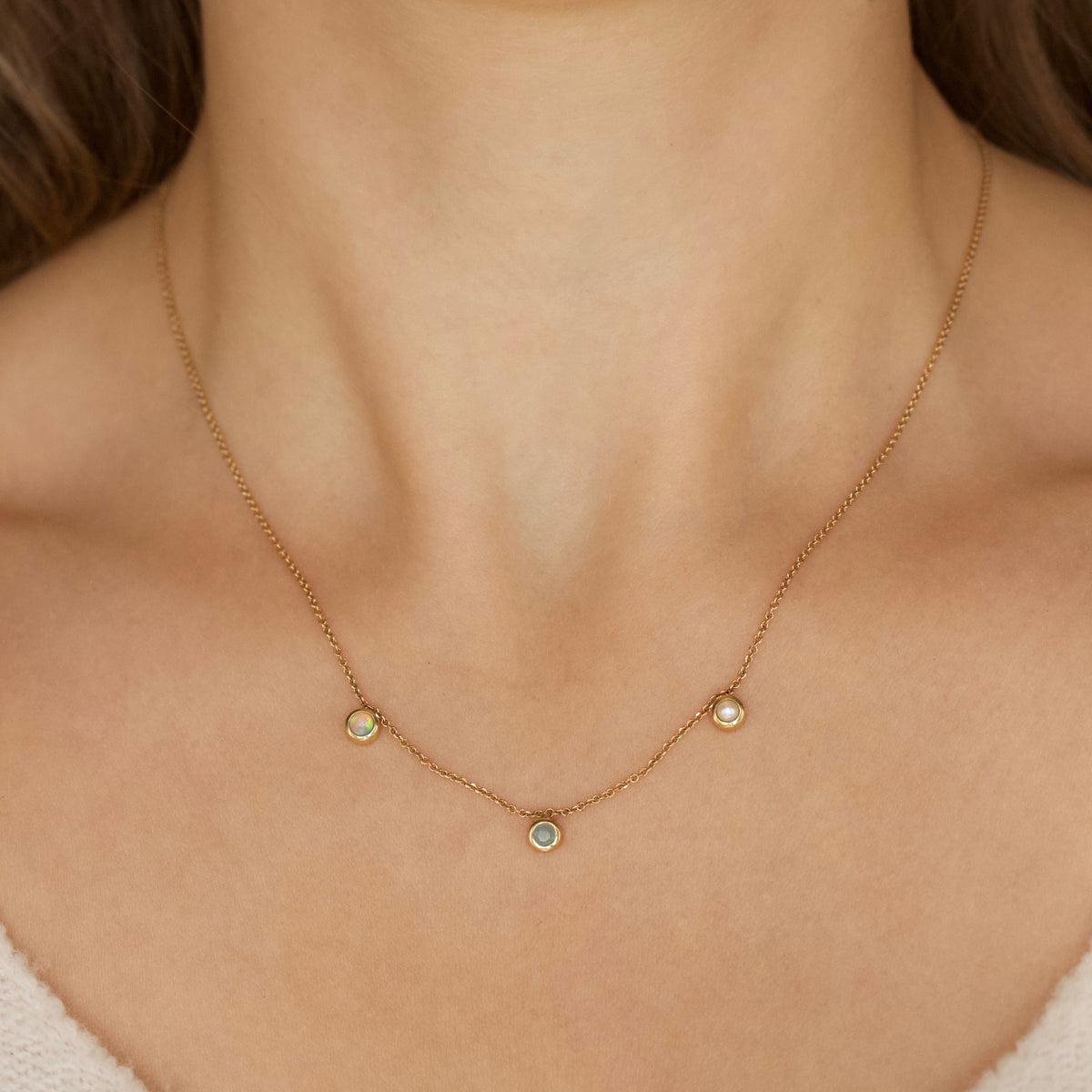 Made in 9k solid yellow gold with custom-selected birthstones. Chain length: 18 inches. Birthstone dimensions vary.