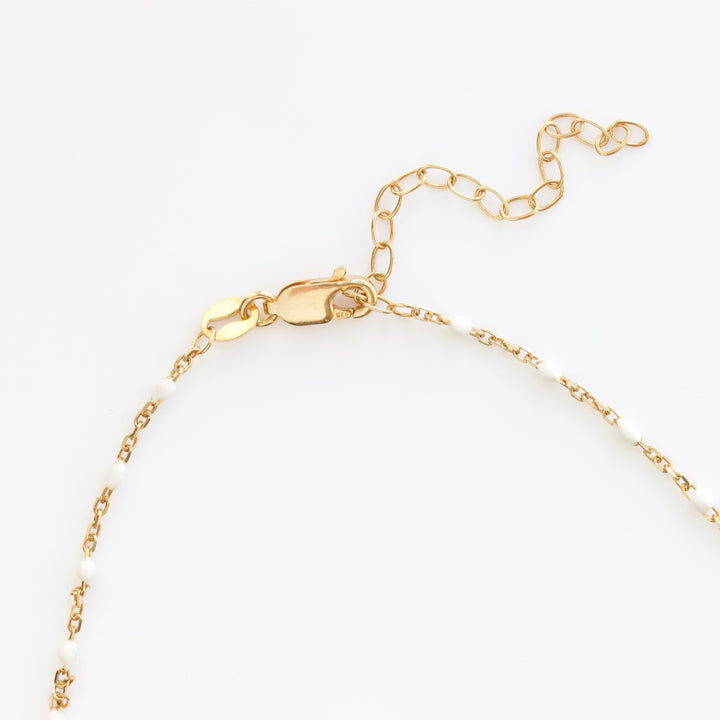 Crafted in 14k gold vermeil with white enamel beads. Length: 18 inches with a 2-inch extender.