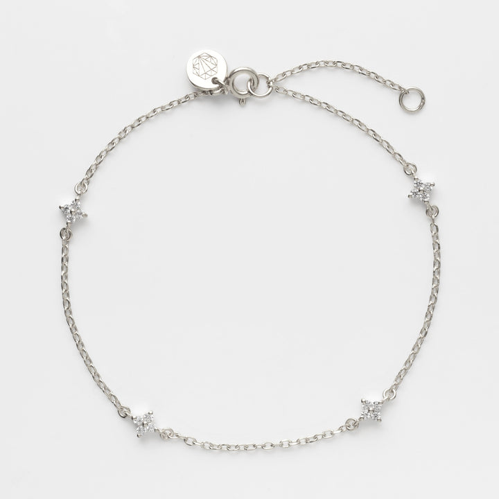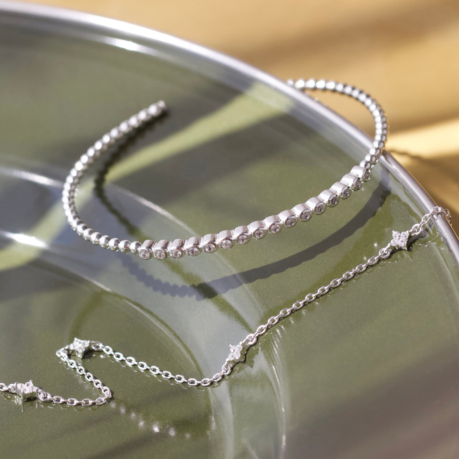 Handcrafted in sterling silver, adorned with white zircon gemstones. Adjustable length ensures a comfortable and secure fit.