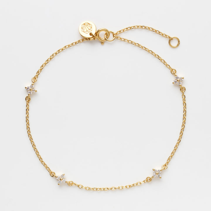 This Dainty Flower Bracelet by Carrie Elizabeth brings a soft touch of sparkle to your wrist with its delicate white zircon petals. Designed for layering or as a standalone piece, it exudes an air of effortless sophistication and charm.