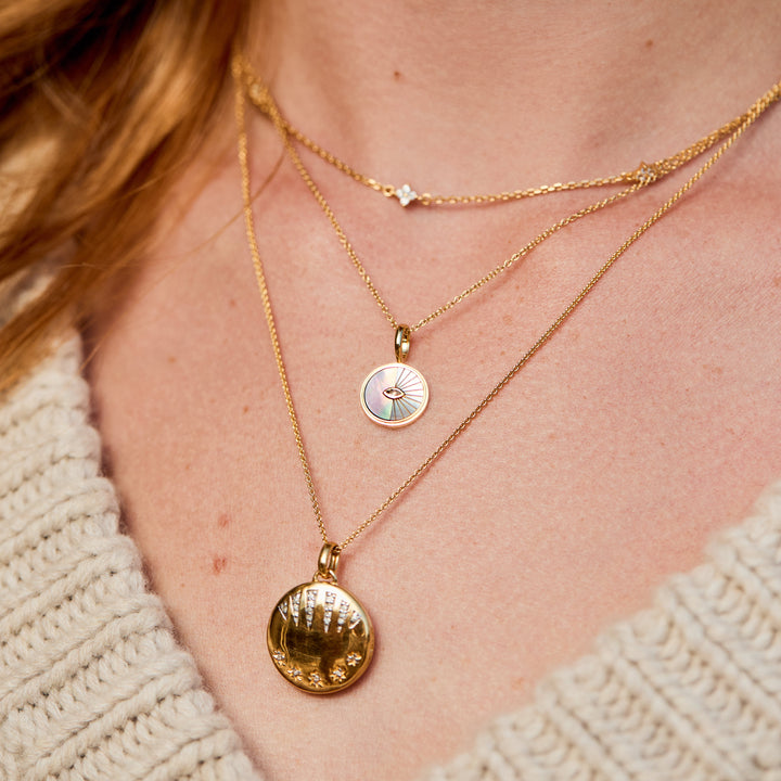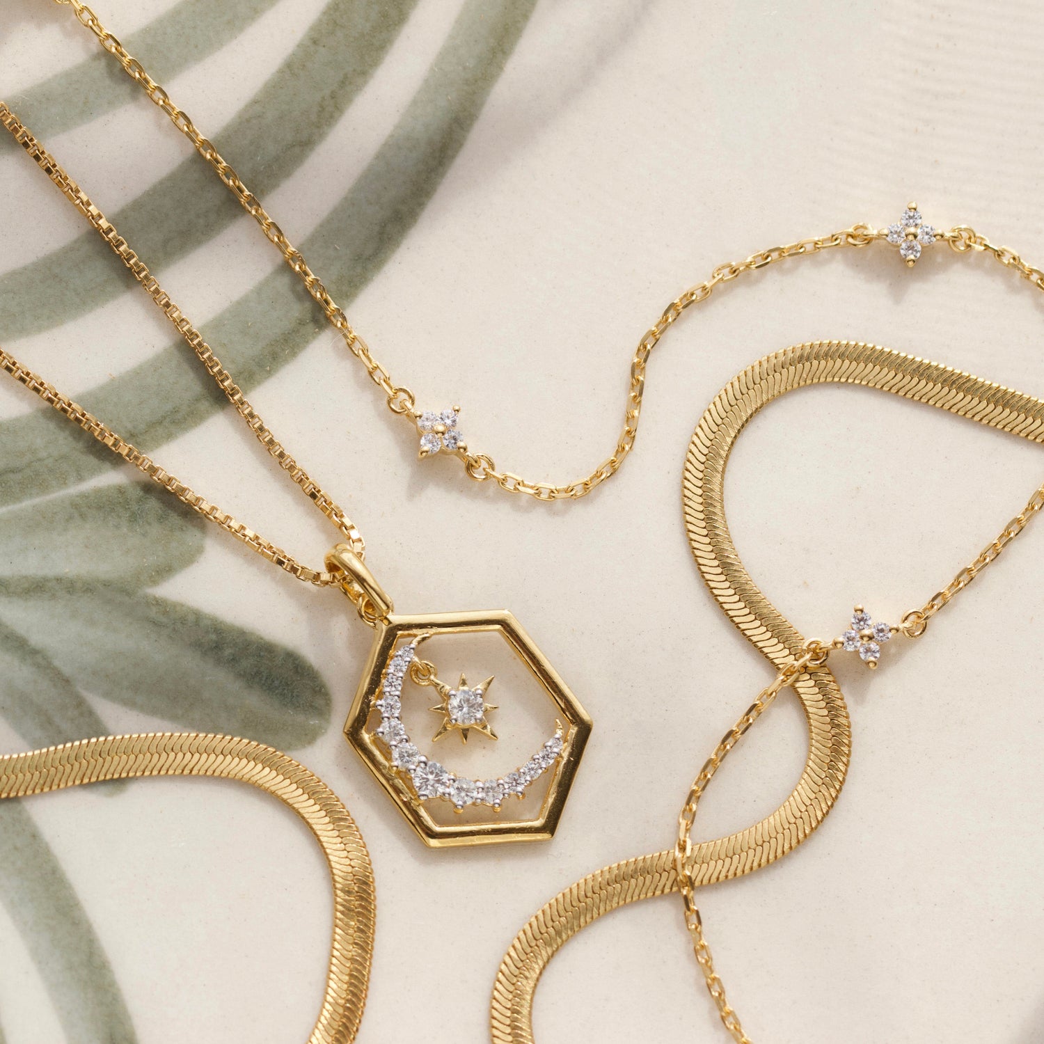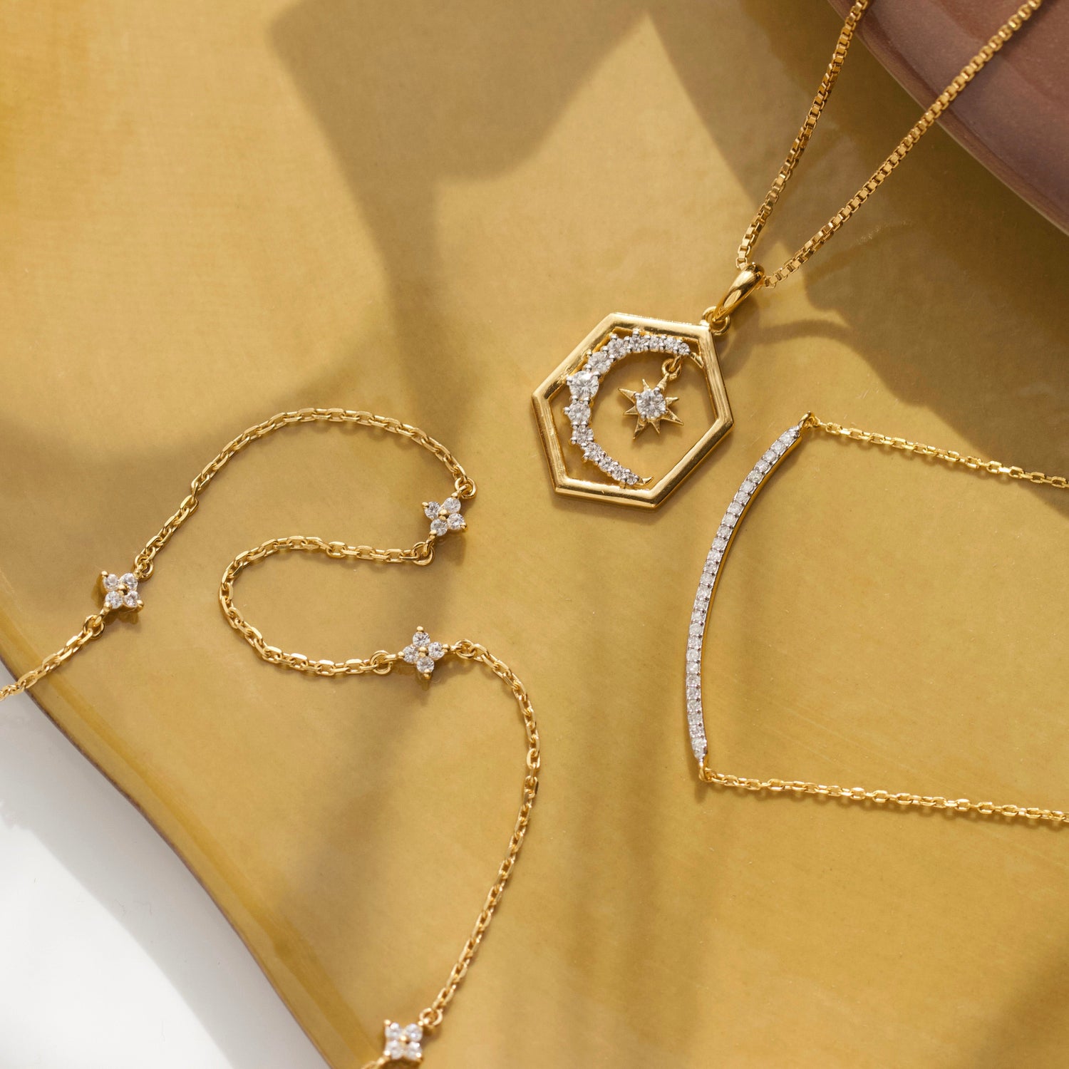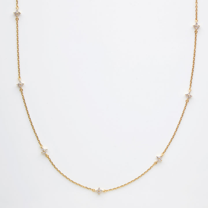 Handcrafted in 14k gold vermeil, adorned with white zircon gemstones. Adjustable chain length allows for versatile and comfortable wear.