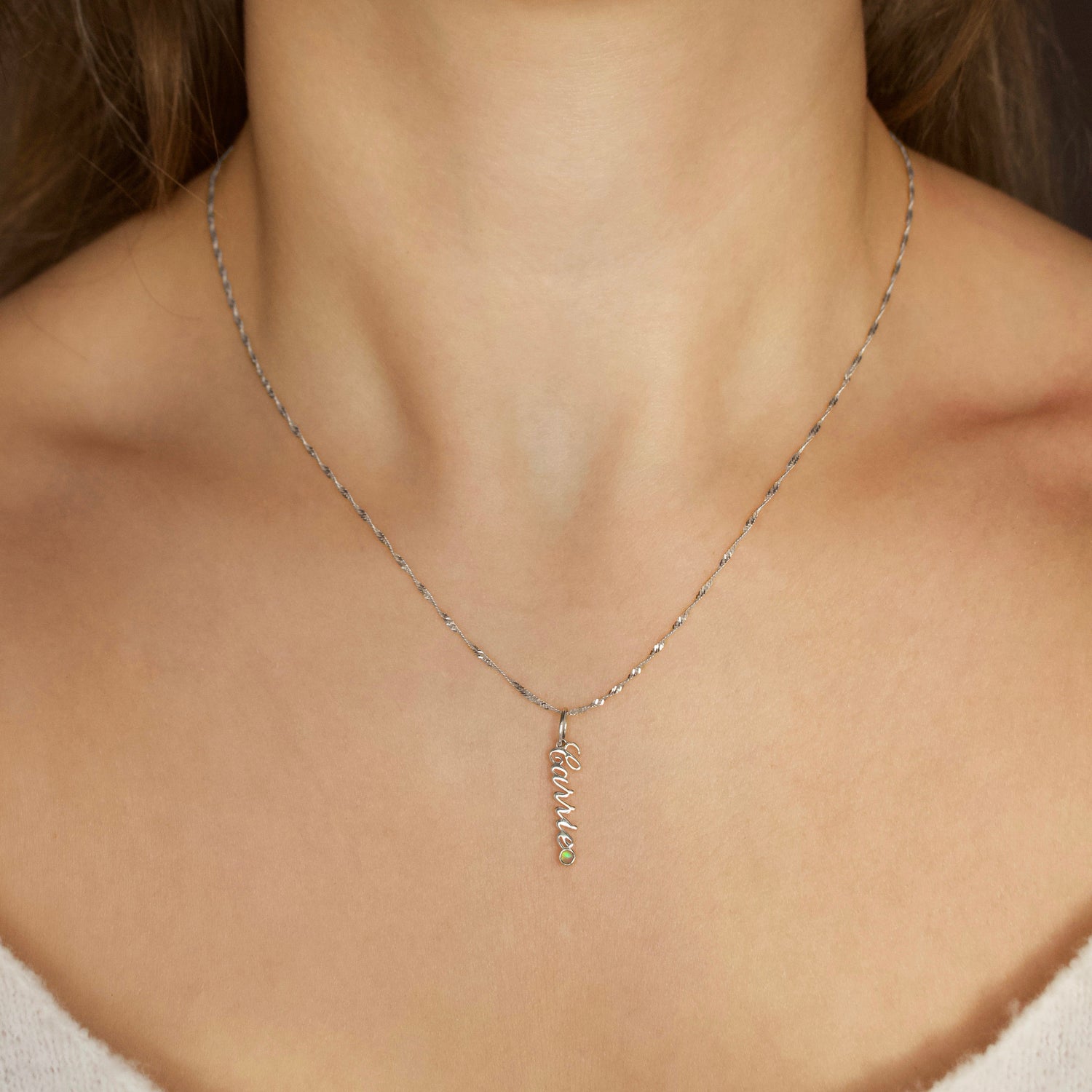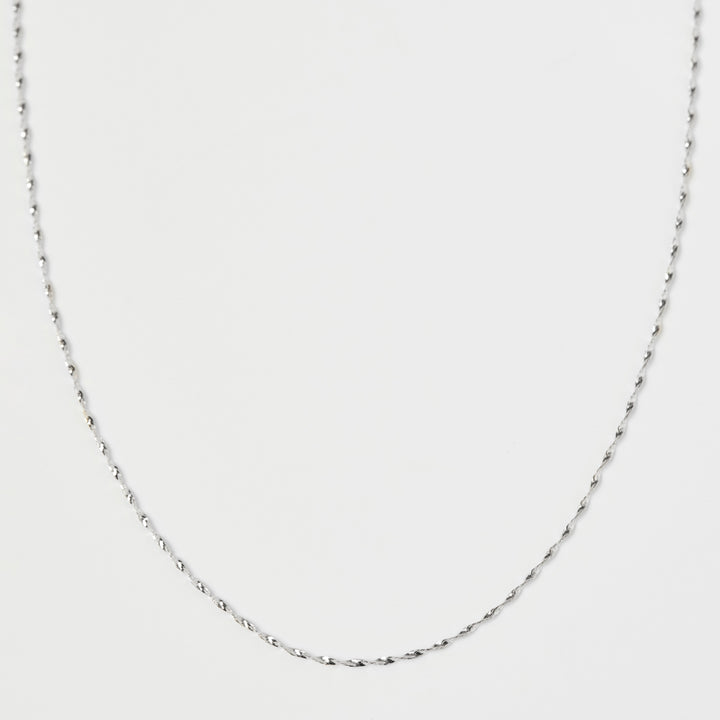 This Dainty Singapore Chain by Carrie Elizabeth in 9k solid white gold is a timeless piece of everyday luxury. Available in versatile lengths, it pairs beautifully with up to two meaningful charms from the Treasured Collection, adding a personalized touch to your look.