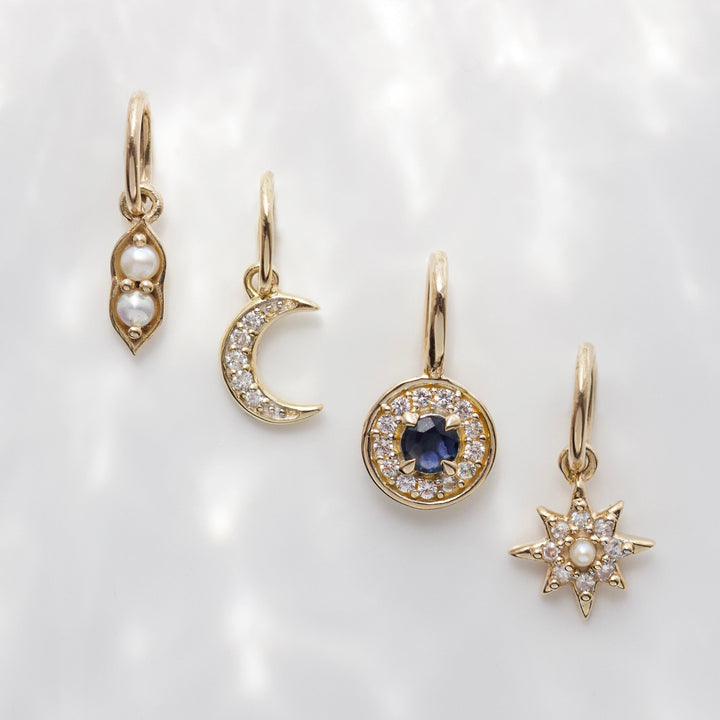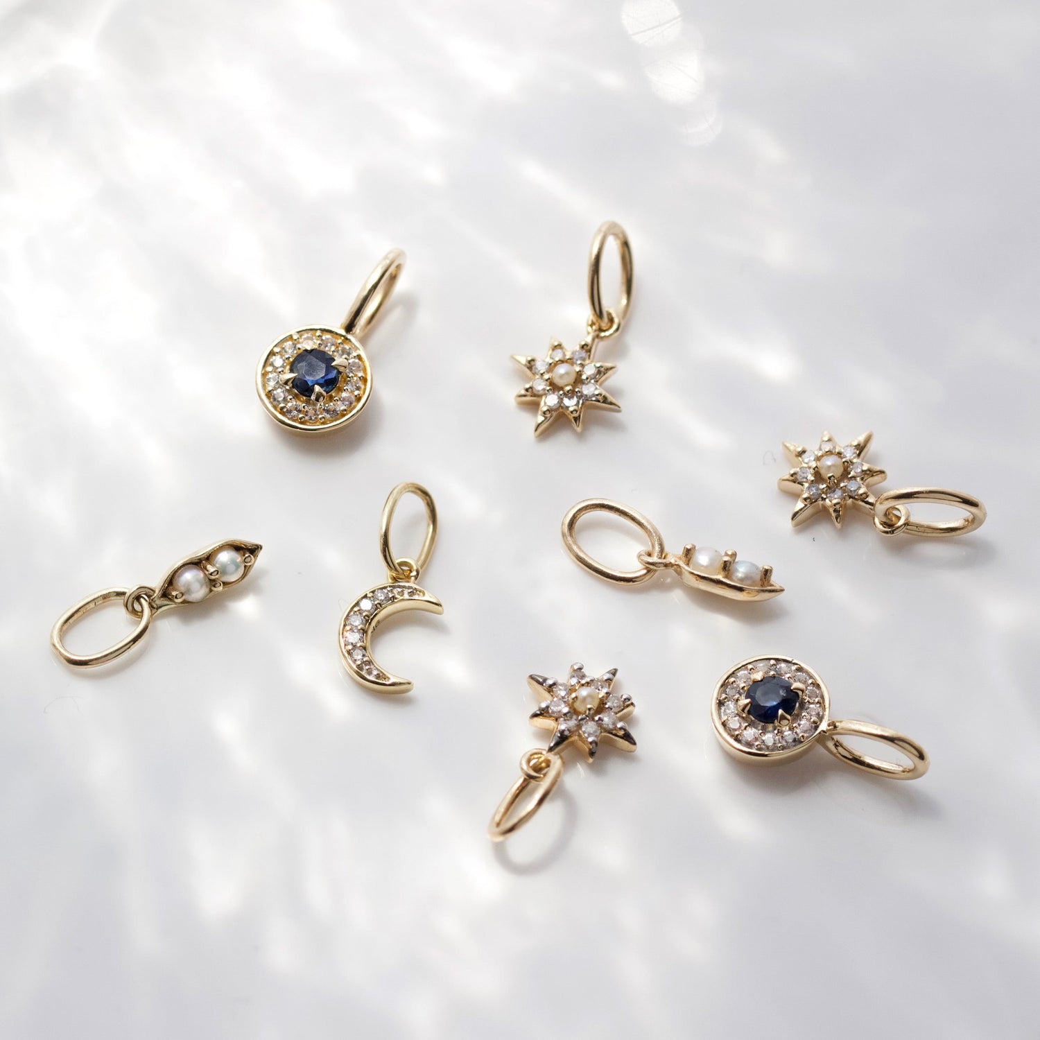 This Diamond Crescent Moon Charm by Carrie Elizabeth embodies magic and meaning. The crescent moon, symbolic of light and the soul, is a timeless motif for inspiration and strength. Designed to tell your story, this charm is a personal and collectible piece that pairs beautifully with other charms on any chain. The diamond’s symbolism of strength and energy adds an empowering touch, making it a meaningful addition to any collection.
