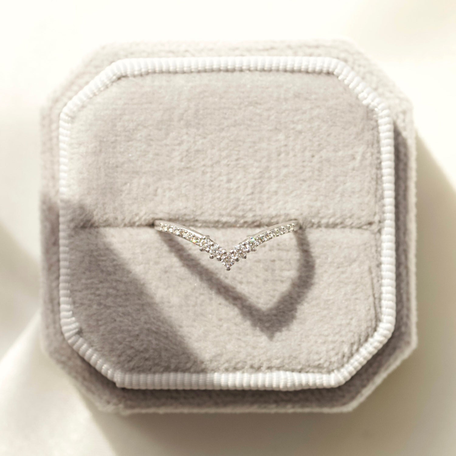 This Diamond Crown Hugging Ring by Carrie Elizabeth offers a refined and regal aesthetic. Designed with a crown-inspired silhouette, it exudes elegance and charm while representing a timeless symbol of devotion. Custom-created in the Written in the Stars collection, the ring is a beautiful addition to engagement and wedding jewelry. Carefully designed in London and brought to life by artisans in Jaipur, it carries a luxurious yet meaningful story.