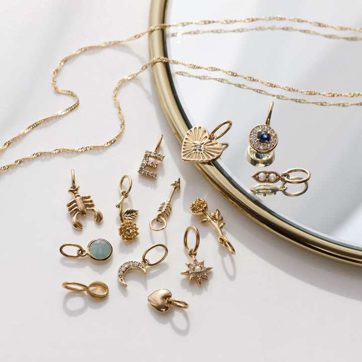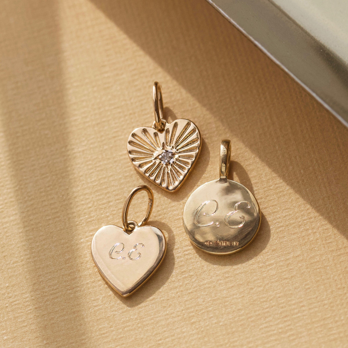 This Diamond Heart Charm by Carrie Elizabeth is a timeless symbol of love and devotion. Crafted with a star-set diamond design, this heart-shaped charm is perfect for keeping close to your heart. Add a personal touch with engraving for up to two letters, making it a truly meaningful keepsake. Designed to pair beautifully with chains like the Singapore, Octagon box, or Petal chain, it’s a versatile and collectible piece to cherish forever.