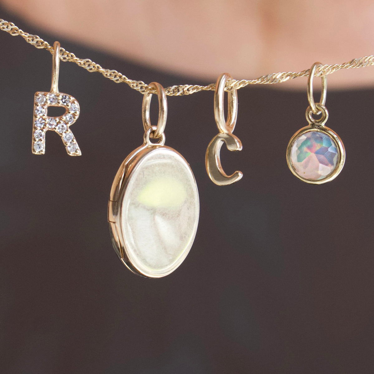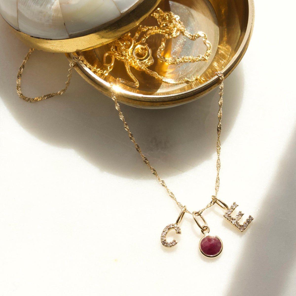 This Diamond Initial Charm by Carrie Elizabeth is a timeless and personal accessory designed to tell your story. Customize it with special initials or create meaningful combinations for a truly unique piece. Perfect for pairing with chains like the 9k Singapore chain, Octagon box chain, or Petal chain, this charm adds a sparkling touch of elegance and individuality to your jewelry collection.