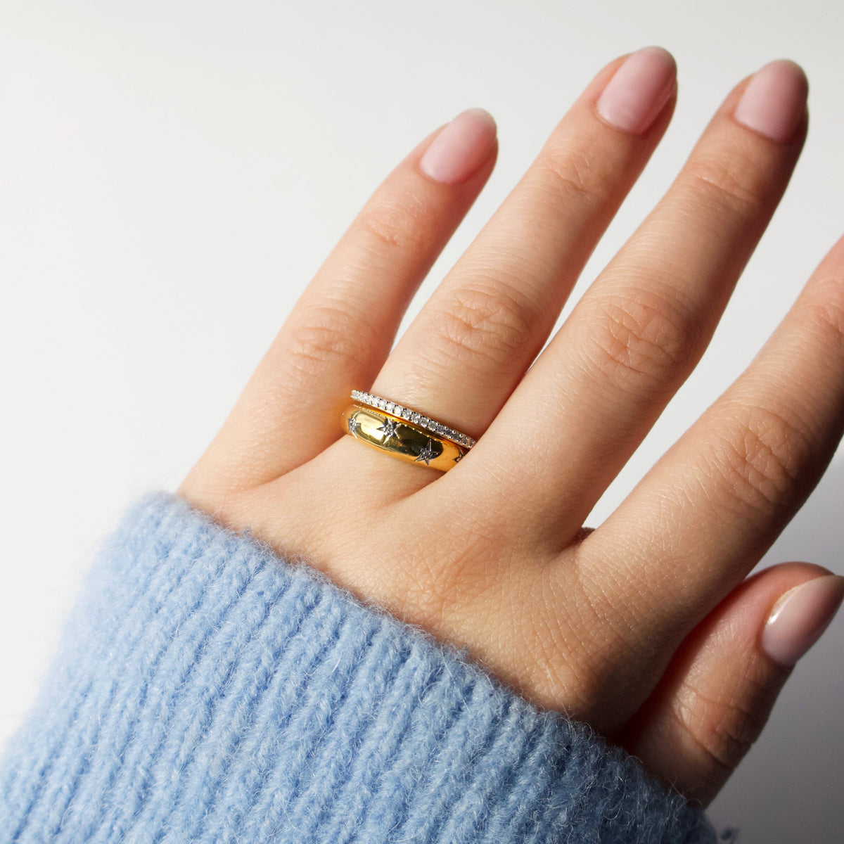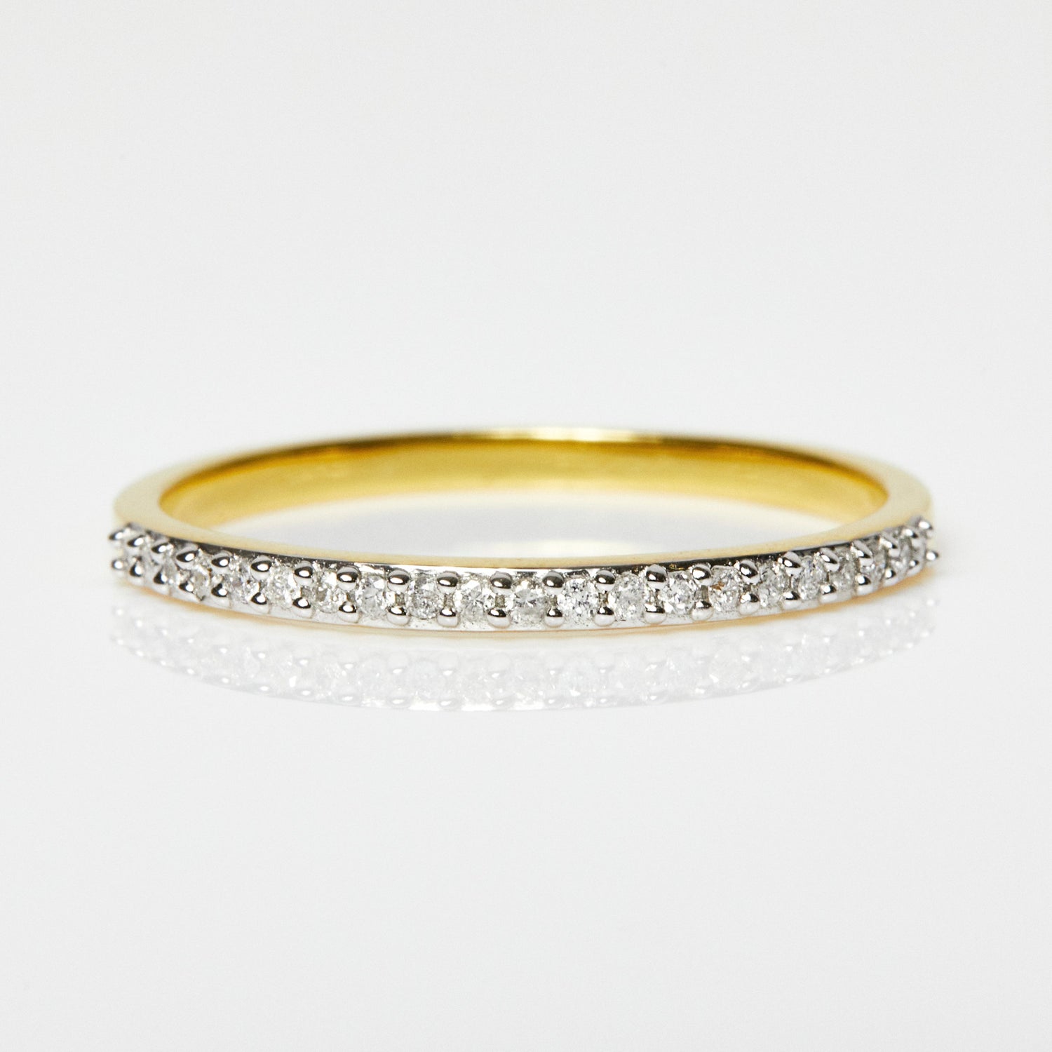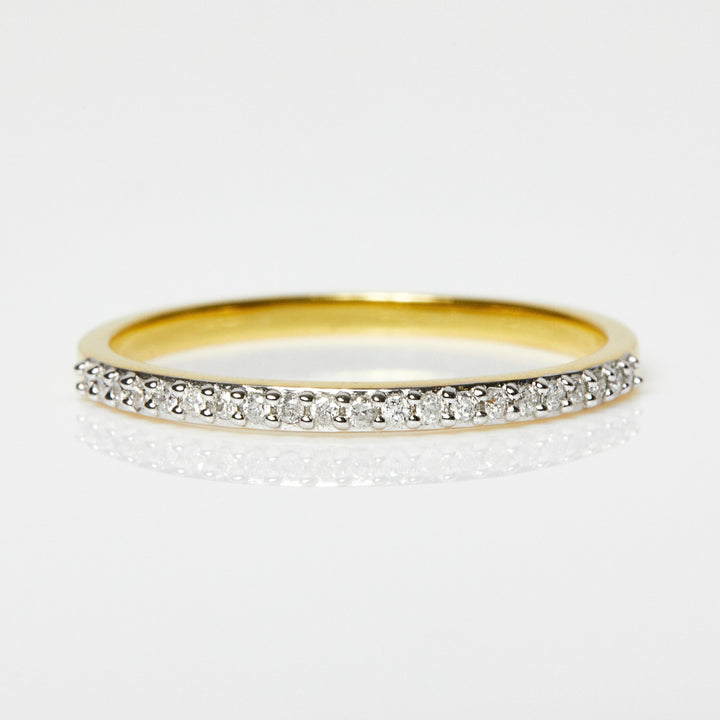 Crafted in 14k gold vermeil, featuring a 1.7 mm band set with single-cut diamonds totaling 0.12 carats. Designed for stacking or as a standalone piece.