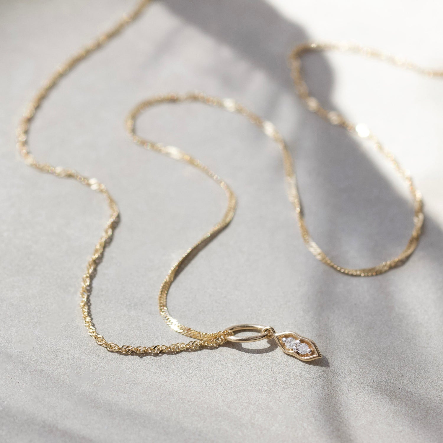 This Diamond Peas in a Pod Charm by Carrie Elizabeth is a heartwarming symbol of close relationships. Representing the special bond between BFFs, sisters, aunts, daughters, mothers, and lovers, this charm celebrates love and connection. Perfect for pairing with chains like the 9k Singapore chain, Octagon box chain, or Petal chain, it’s a meaningful keepsake to treasure forever.