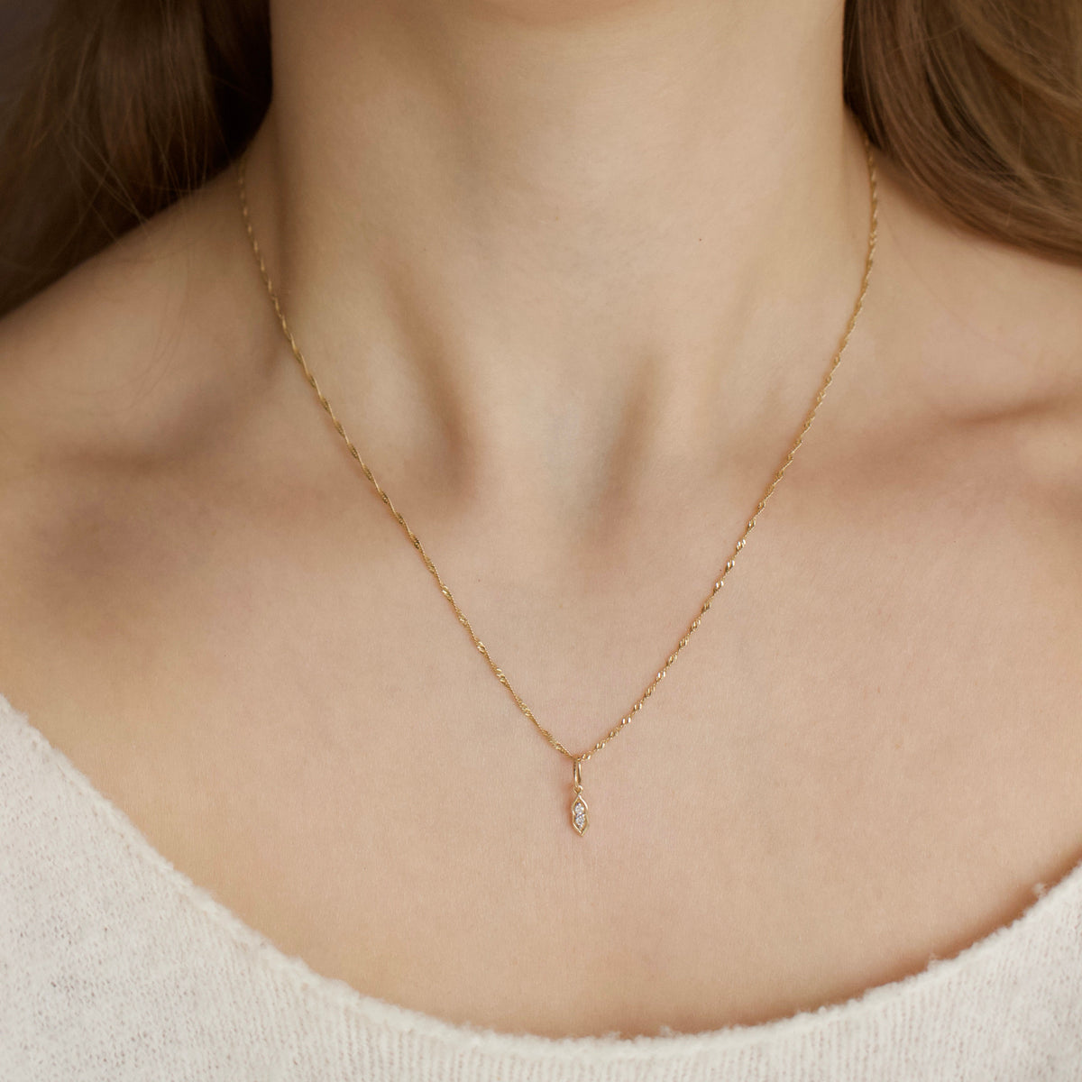 Handcrafted in 9k solid yellow gold, featuring two diamond accents symbolizing close relationships. Compatible with various chain styles, making it versatile for layering or wearing alone.