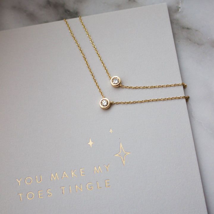 Handcrafted in 9k solid yellow gold, featuring a 3mm round-cut diamond totaling 0.115 carats. Set on a 20cm adjustable chain for versatility. Designed for lifelong wear, blending luxury and everyday practicality.