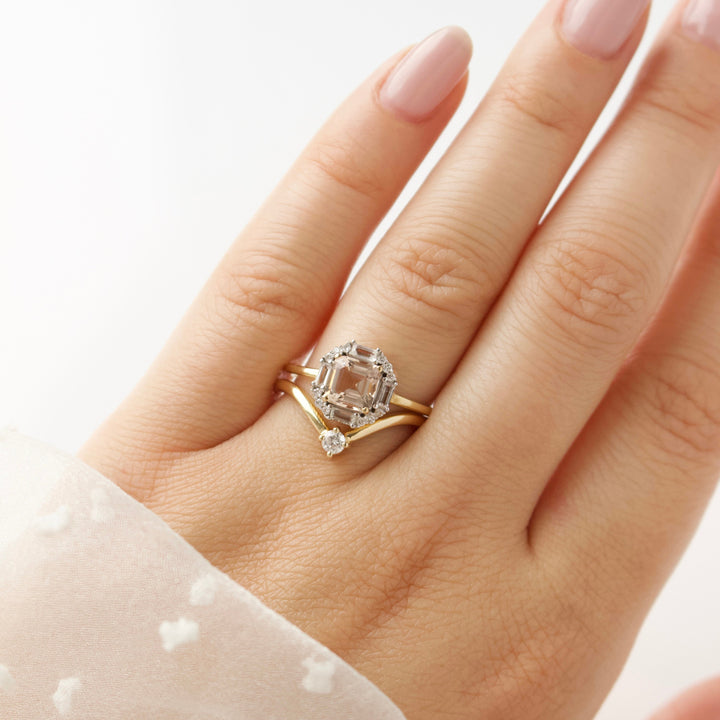 This Diamond Solitaire Wedding Band by Carrie Elizabeth is a timeless symbol of love and commitment. A part of the Written in the Stars collection, this ring is crafted with a deep V shape to fit a variety of larger rings, including vintage pieces. Designed in London and handcrafted in India, it combines elegance with a modern twist, ensuring it becomes a cherished heirloom. Perfect as a wedding or anniversary band.