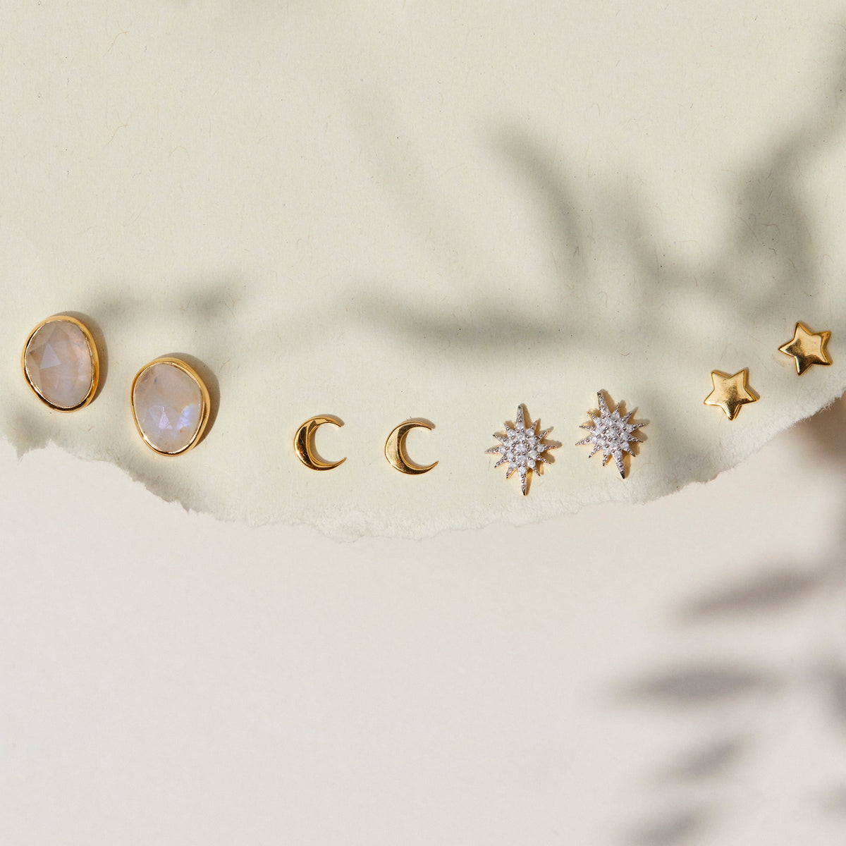 Handcrafted in 14k gold vermeil, featuring starburst-shaped diamond studs. Designed to be elegant and sparkly, perfect for everyday wear and special occasions.