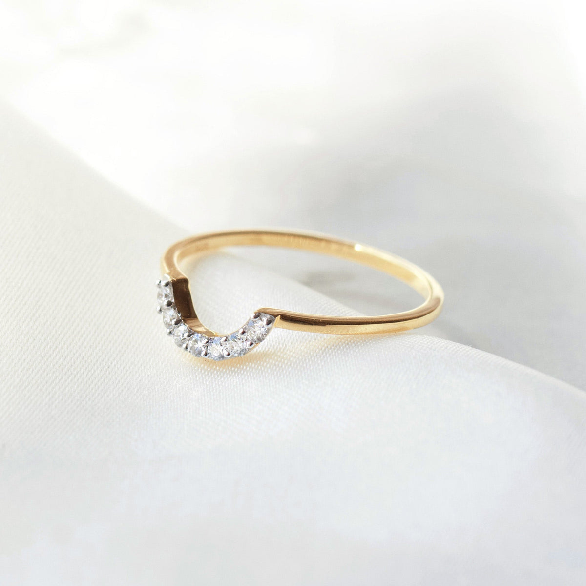 This Diamond U Shaped Hugging Ring by Carrie Elizabeth is a stunning addition to the Written in the Stars collection, combining vintage inspiration with modern elegance. Crafted in 14k solid yellow gold, this ring is designed to be a precious heirloom, symbolizing eternal love and commitment. The gentle curve of the U-shape creates a perfect embrace, making it ideal for pairing with an engagement ring or wearing solo as a statement piece. It’s a meaningful piece made with care, perfect for those special moments in life.