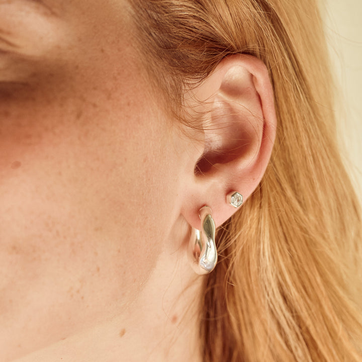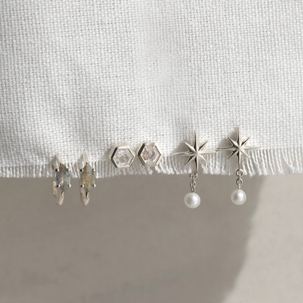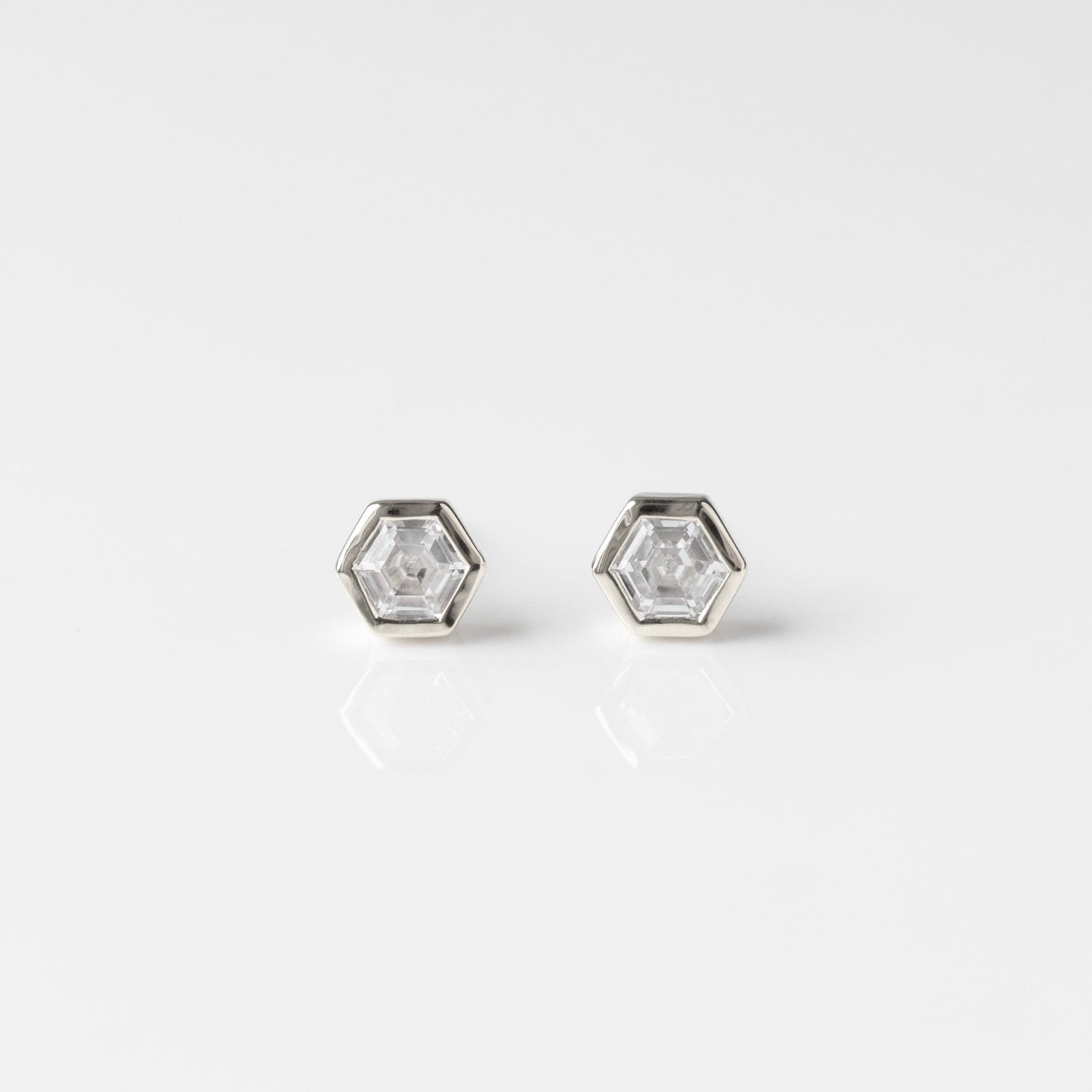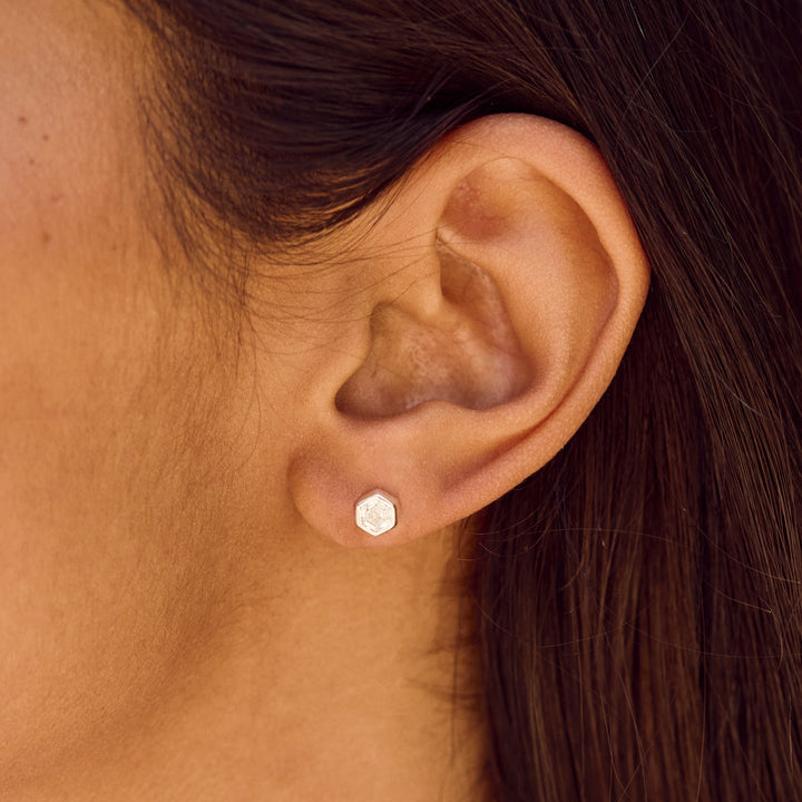 These Hexagon Studs by Carrie Elizabeth Jewelry are a modern and eye-catching pair, designed to add a subtle sparkle to your look. The clean geometric shape and the use of cubic zirconia create a sleek, versatile style that complements any outfit. Cubic zirconia is believed to improve focus and clarity, making these studs not only beautiful but also meaningful.