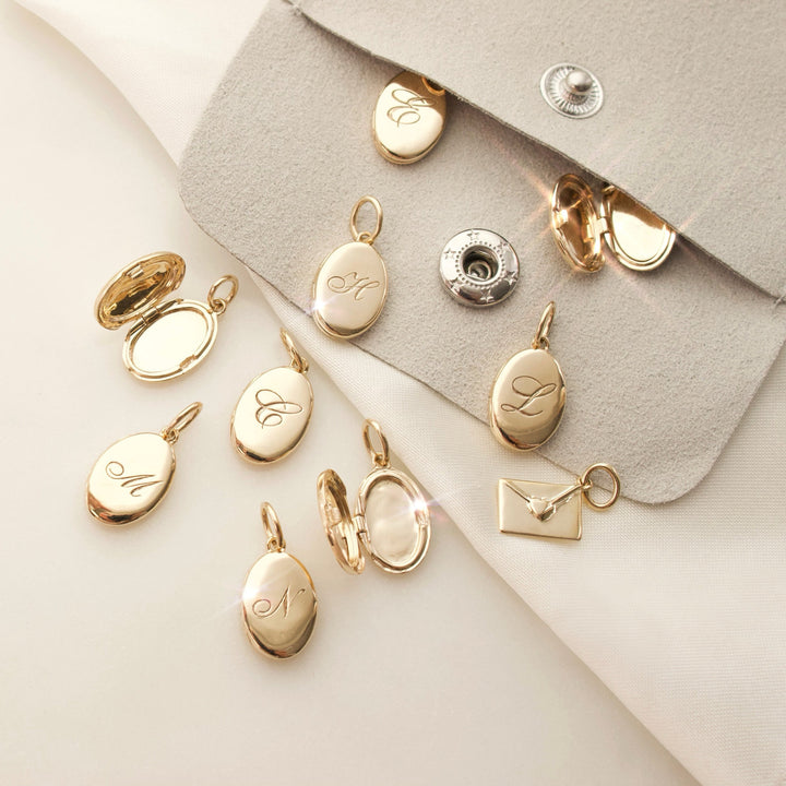 The Locket Charm in 9k Solid Yellow Gold by Carrie Elizabeth Jewelry is a meaningful and personal piece designed to tell your unique story. Crafted in 9k solid gold, this charm is a timeless addition to any jewelry collection. It is perfect for layering or wearing alone and can be customized with other charms that hold special meaning. Pair it with your favorite solid gold chain, such as the 9k Singapore chain, Octagon box chain, or Petal chain, to create a truly personalized piece that travels with you through life’s journey.
