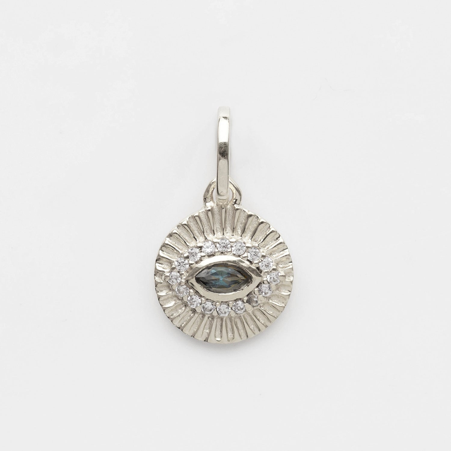 Crafted in sterling silver, featuring an evil eye charm. Pairs beautifully with the Sunray Chain or Lucky Star Chain.