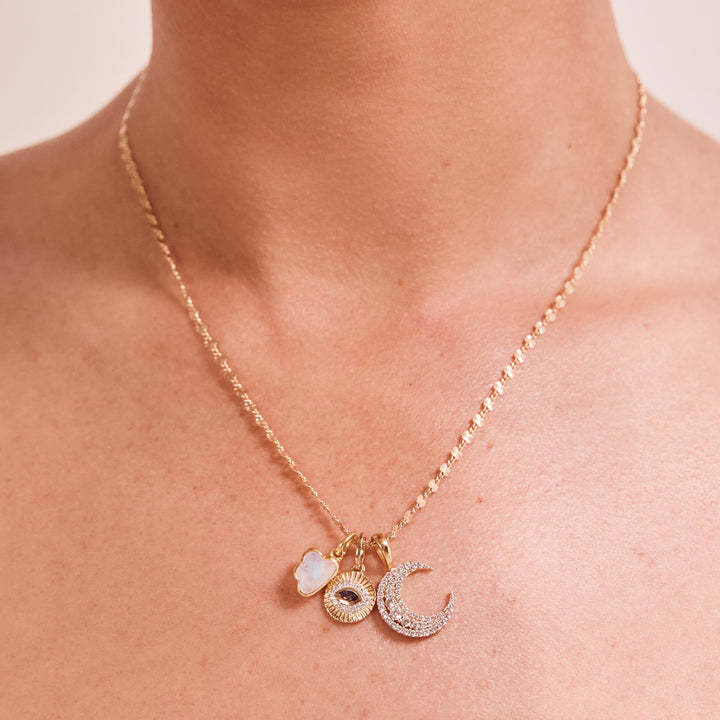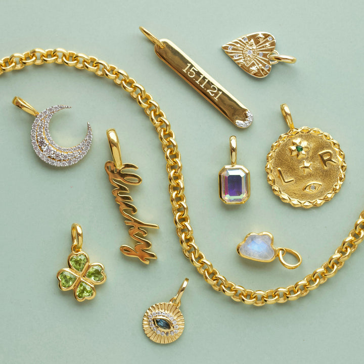 This Lucky New Moon Charm by Louise Thompson x Carrie Elizabeth represents new beginnings, transformation, and growth. Inspired by the phases of life, the new moon symbolizes fresh starts and the potential that lies in embracing change. Designed as a meaningful addition to your collection, this charm encourages setting new intentions and celebrating life’s evolving journey. Pair it with the Sunray Chain or Lucky Star Chain to complete the look.