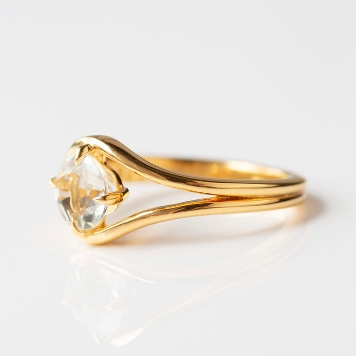 Handcrafted in 14k gold vermeil, featuring a faceted green amethyst gemstone. Polished to a high shine for a luxurious finish.